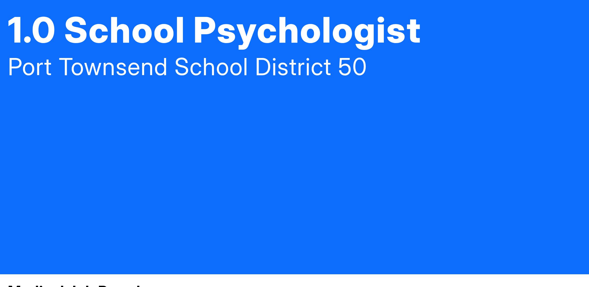 Position Opening Announcement: 1.0 FTE School Psychologist