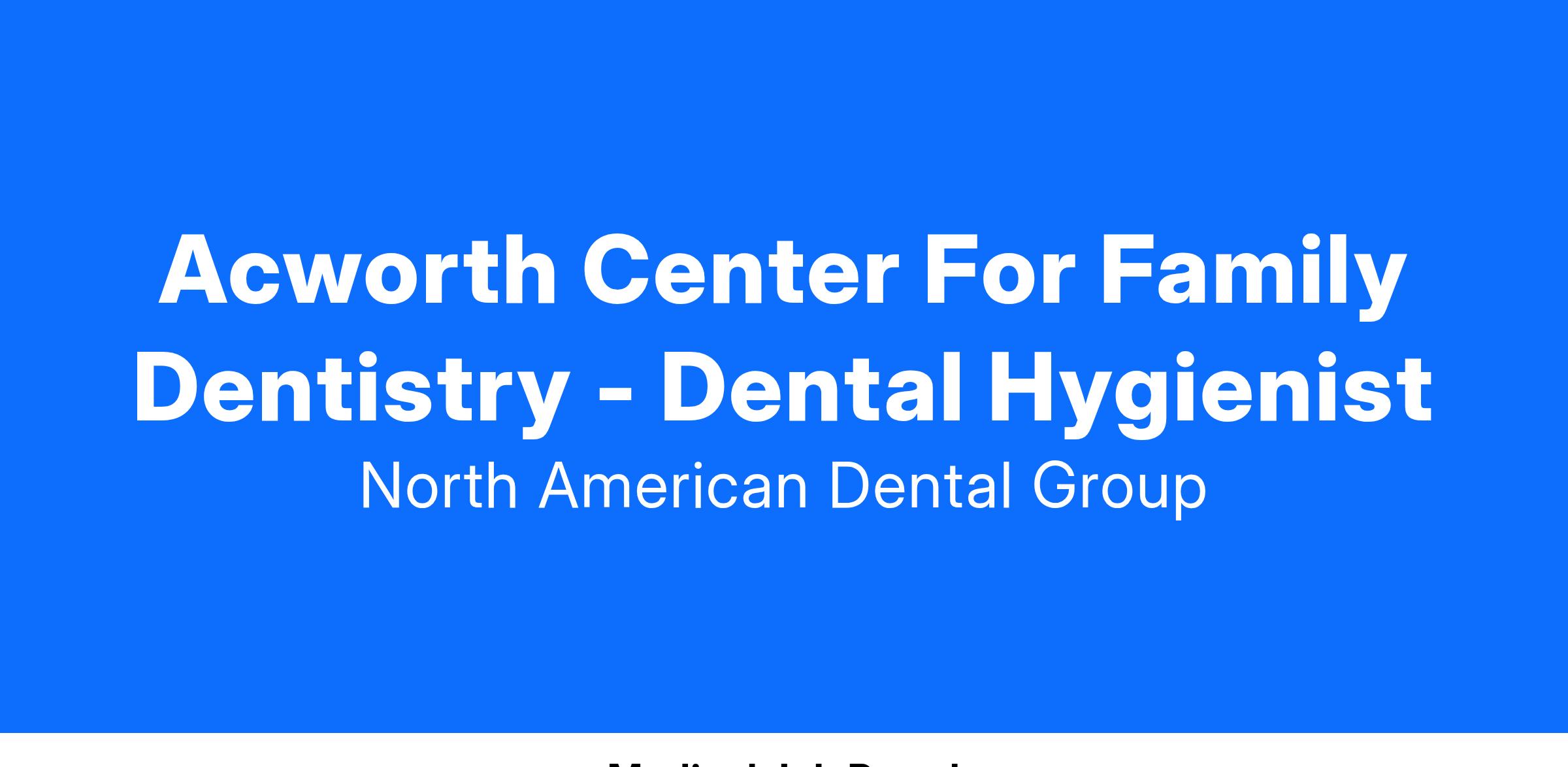 Acworth Center For Family Dentistry is looking for a licensed, patient-focused hygienist, with a like-minded career vision, to provide best-in-class patient care.