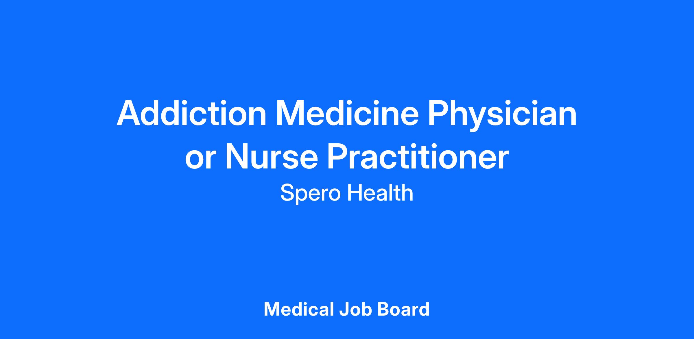 Spero Health is seeking an Addiction Medicine Physician or Nurse Practitioner to join our team!