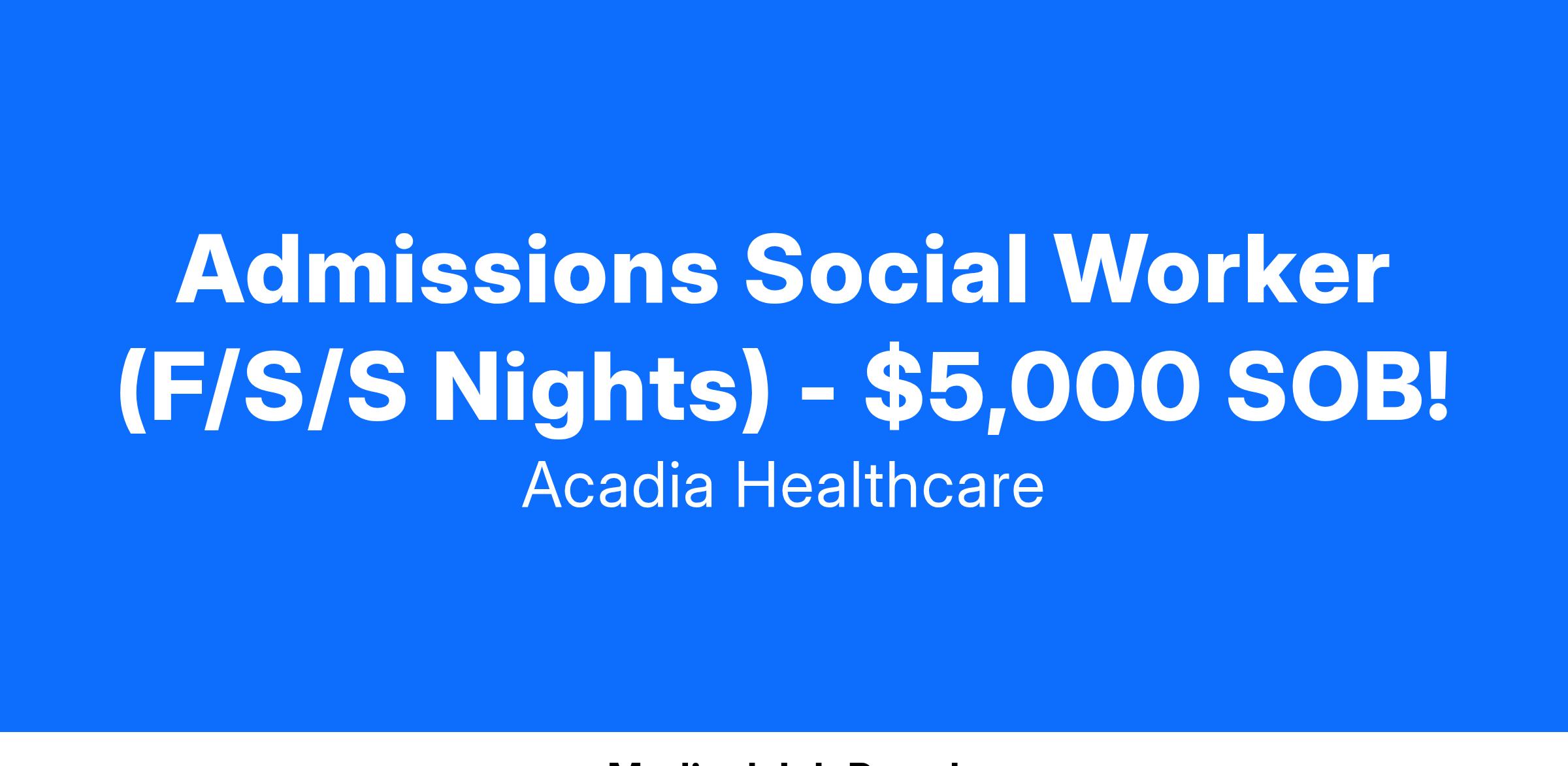 Shorewood Behavioral Health Hospital is hiring full-time Admissions Counselors/Social Workers.