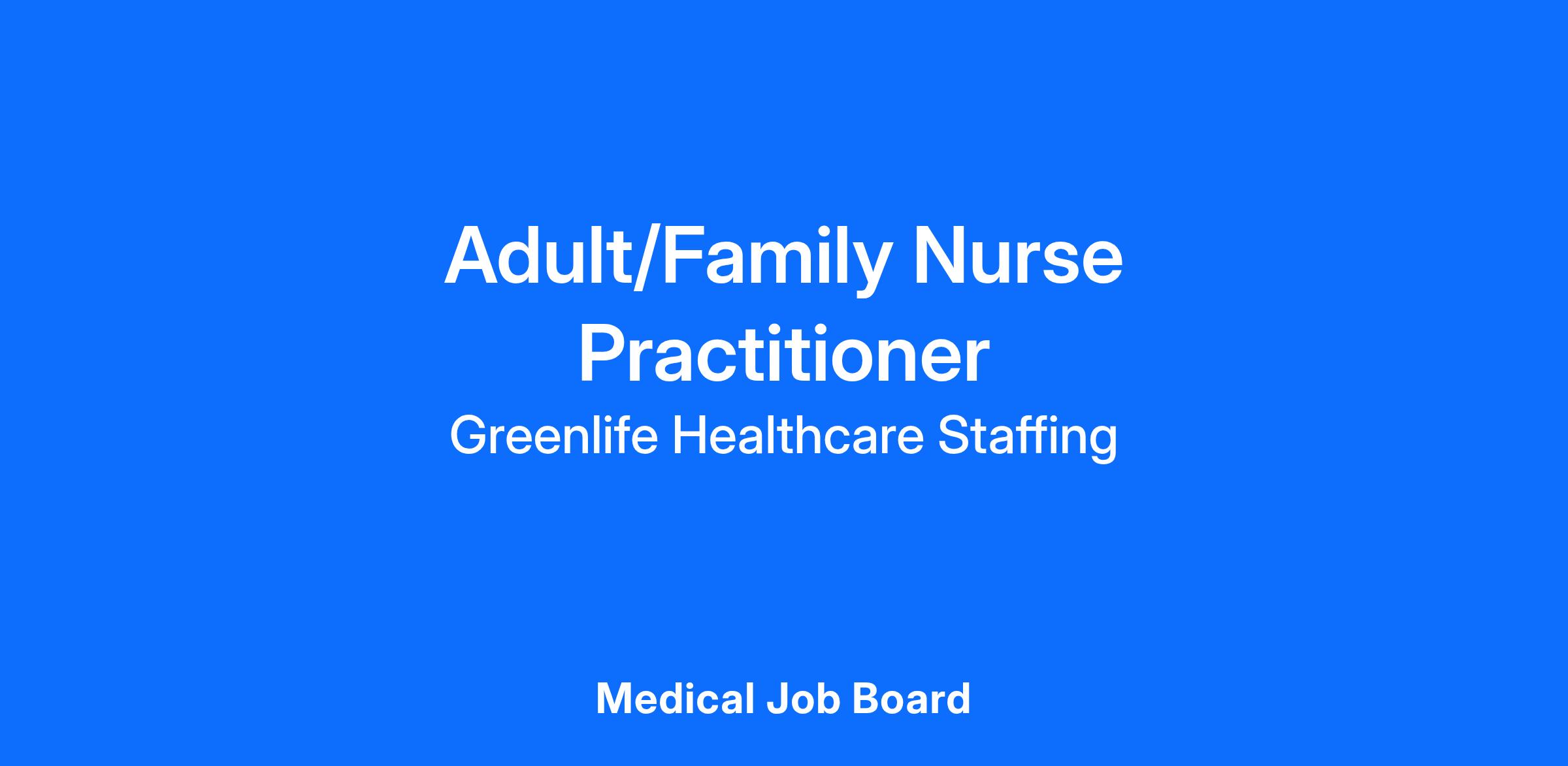 Greenlife Healthcare Staffing is currently seeking an Adult or a Family Nurse Practitioner to fill an opening with a Family Health Center located in Brooklyn, New York