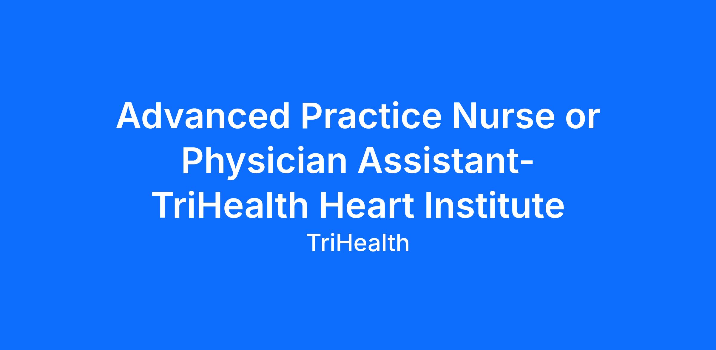 *** Advance Practice Nurse or Physician Assistant- TriHealth Heart Institute***