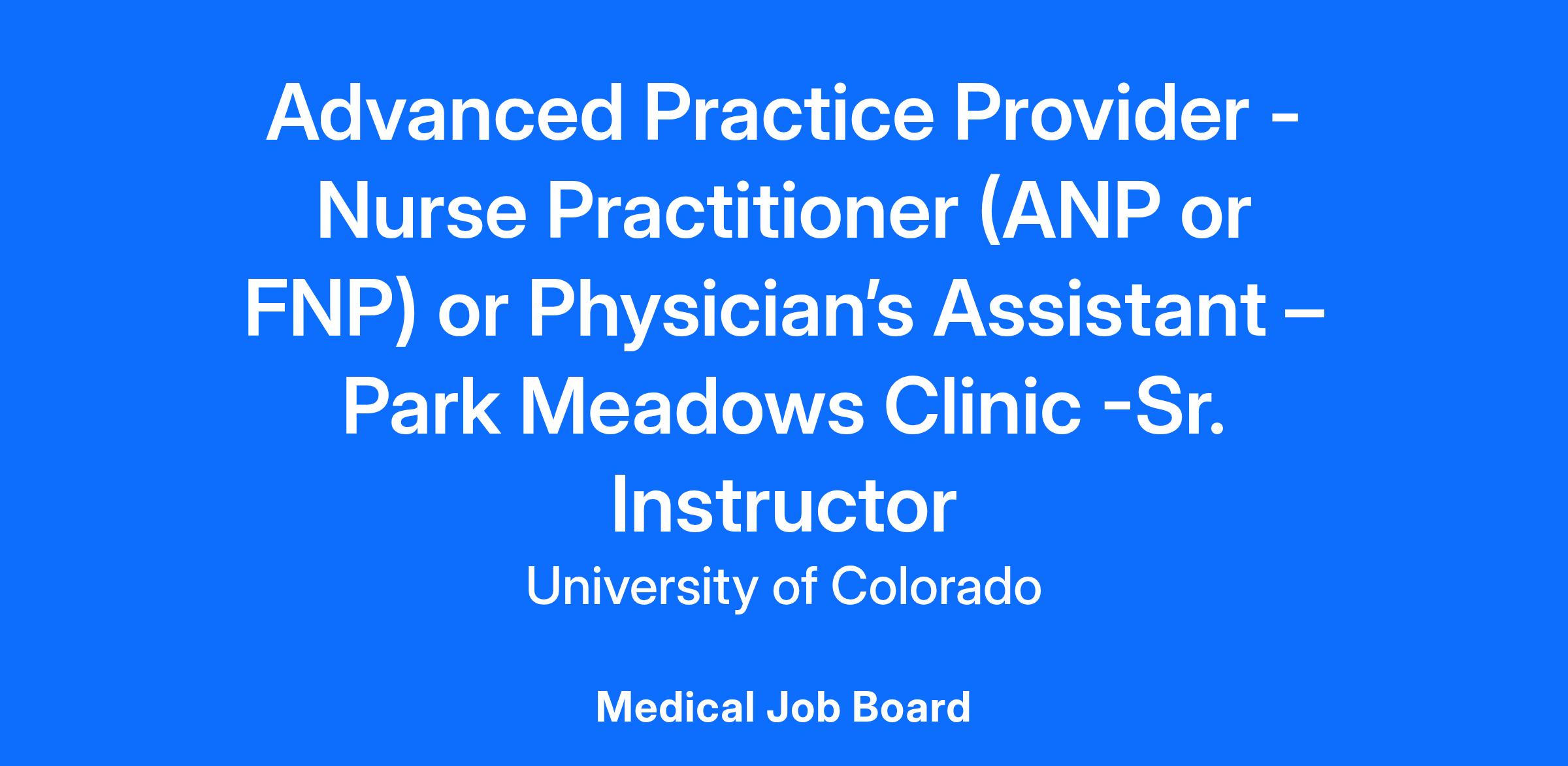 Job Title\: Advanced Practice Provider - Nurse Practitioner (ANP or FNP) or Physician’s Assistant – Park Meadows Clinic -Sr. Instructor