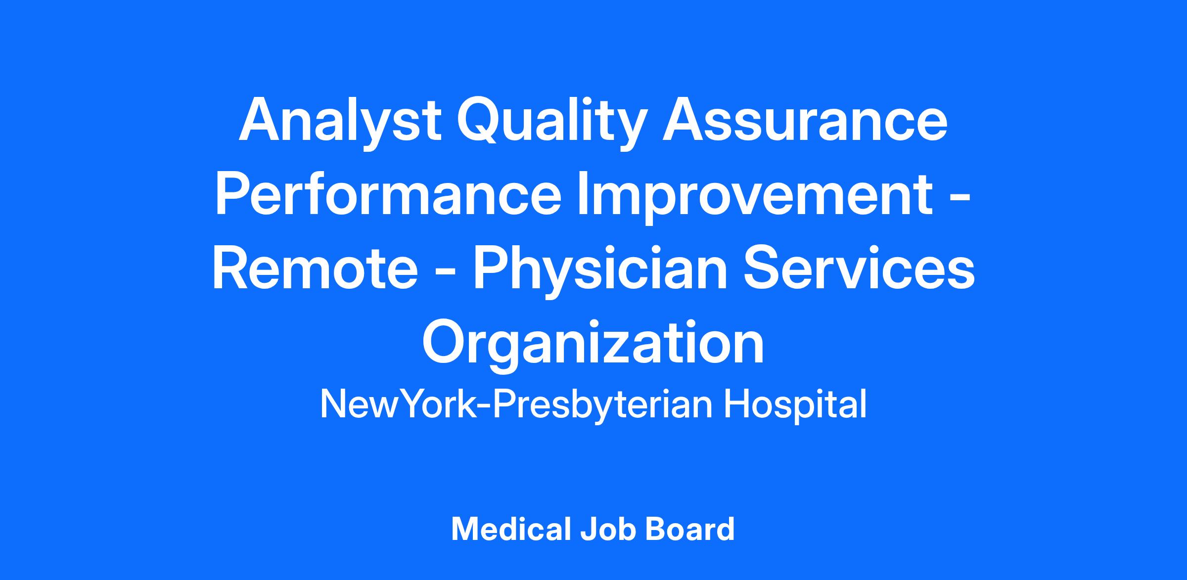 Quality Assurance Performance Improvement Analyst- Remote
