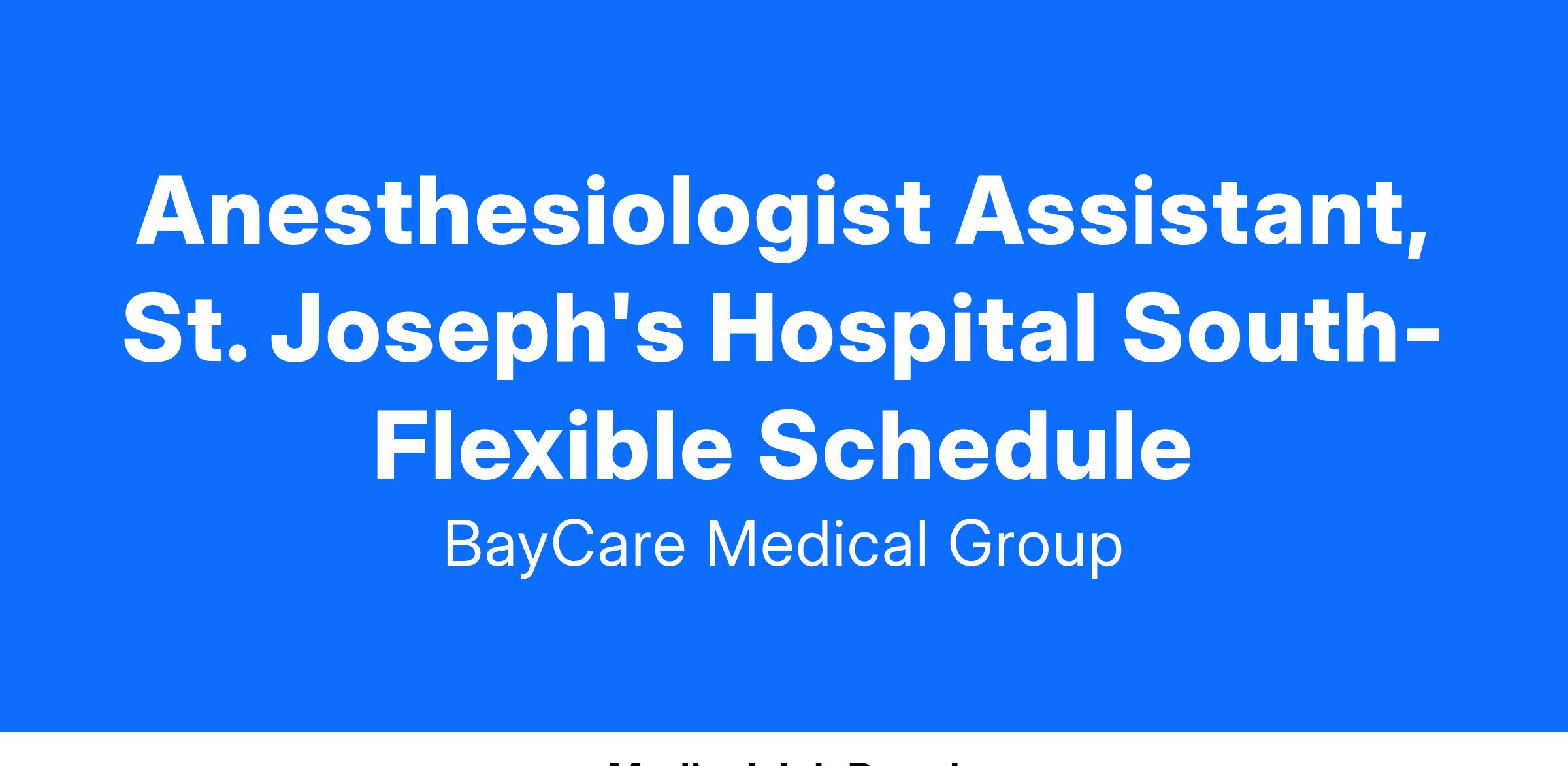 Certified Anesthesiologist Assistant (CAA) Opportunity | St. Joseph’s Hospital-South, Riverview, FL