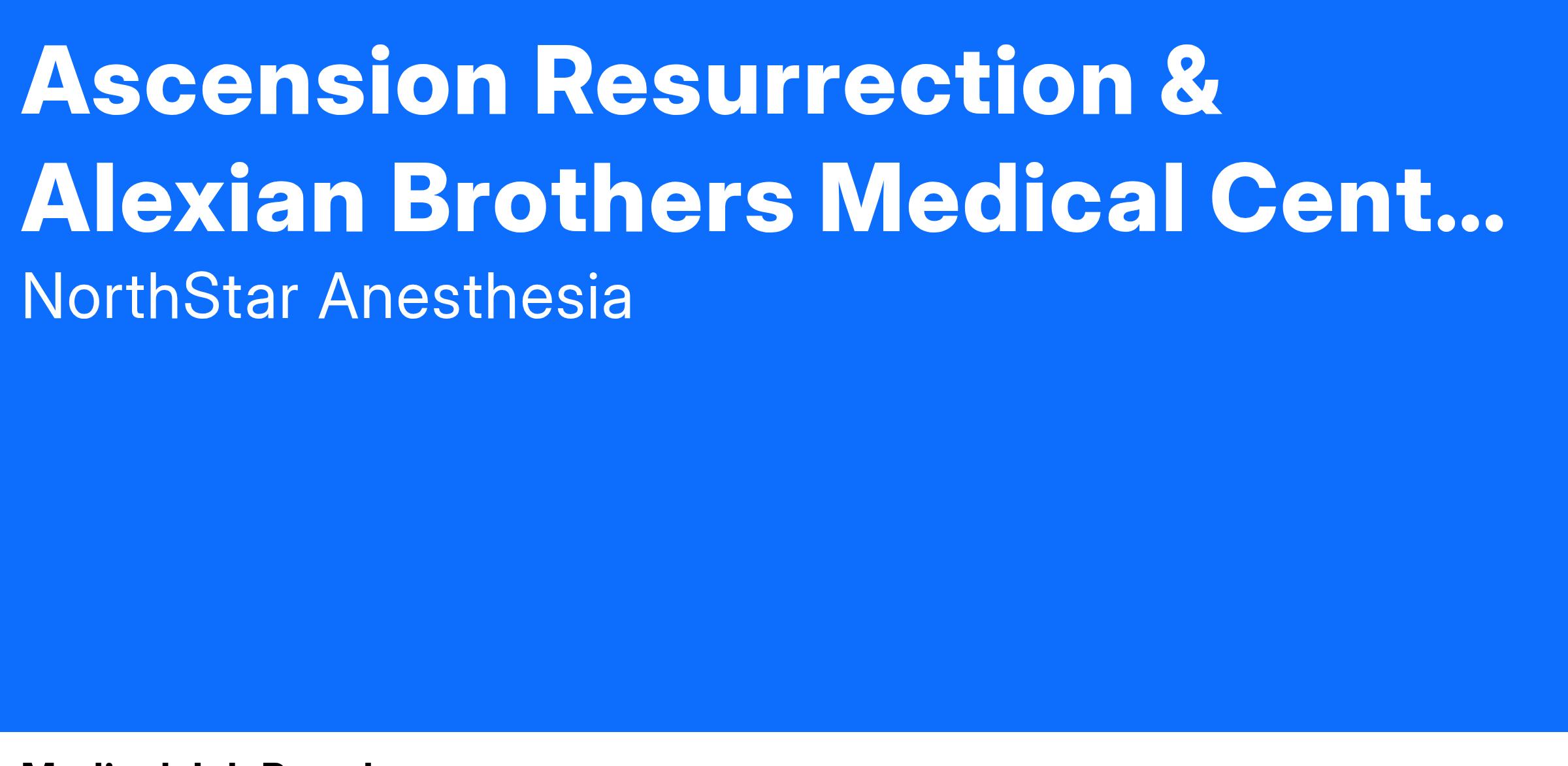 Summary of Job: NorthStar is looking for a cardiac anesthesiologist for a split position between Resurrection Medical Center and Alexian Brothers Medical Center.