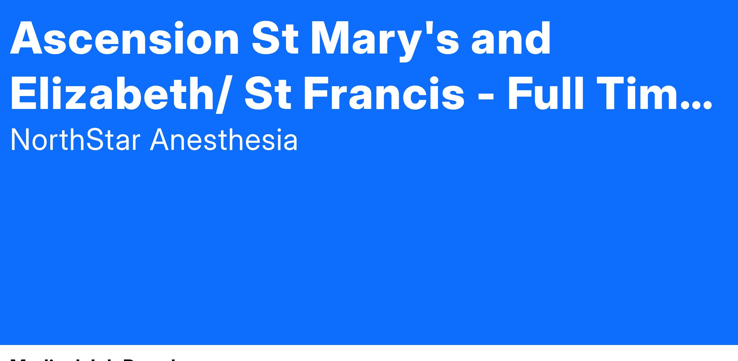 Summary of Job: Full Time Opportunity to be split between Ascension St Marys and Elizabeth and St Francis! 50/50 split between locations!