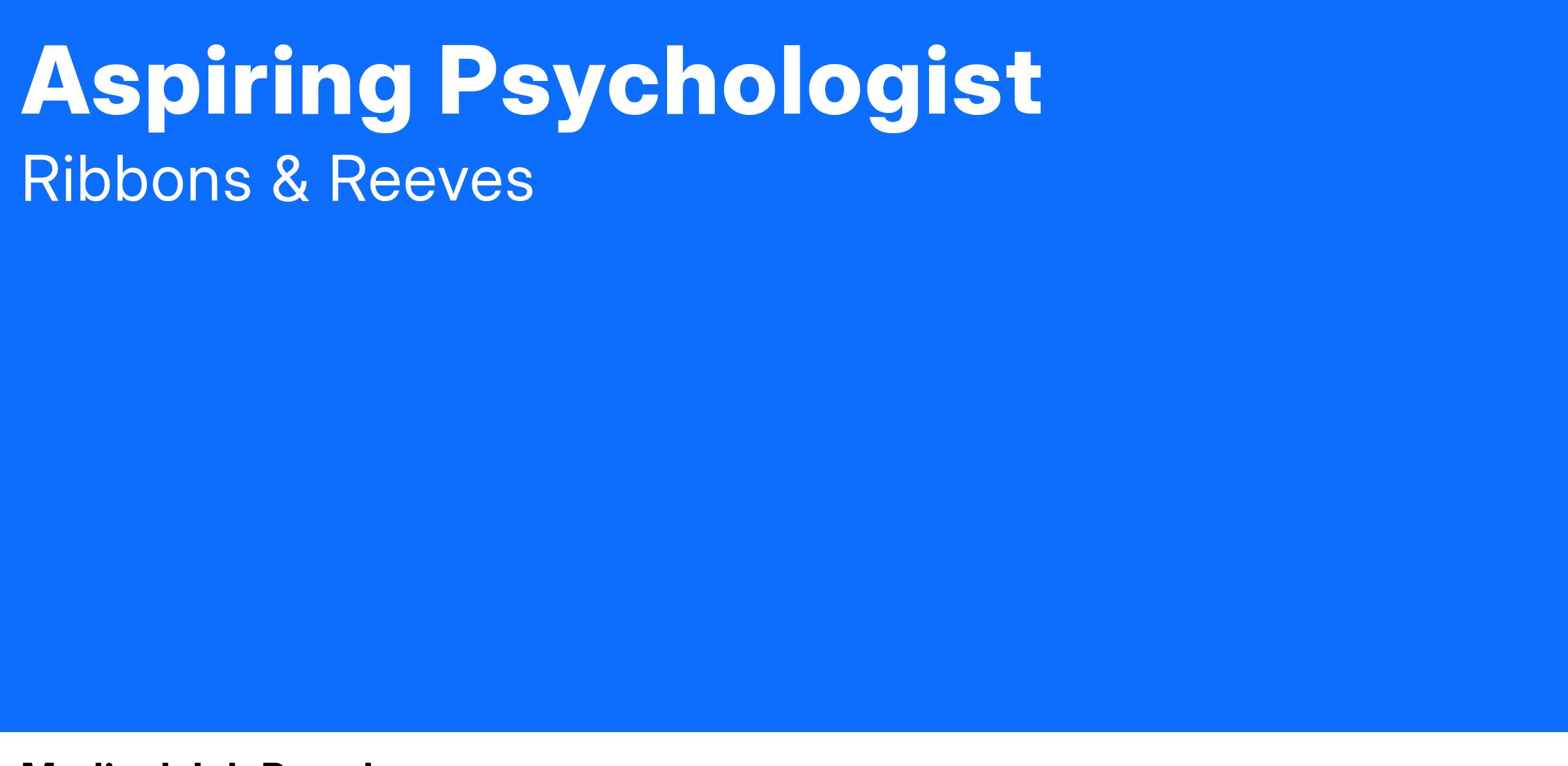 Ribbons & Reeves are London’s leading Education Recruiters. We specialise in helping educators of all levels secure long-term and permanent roles, such as this Aspiring Psychologist role in York. For other roles like this, check out our website, search ‘Ribbons & Reeves’. We look forward to supporting you in your application to this Aspiring Psychologist role.