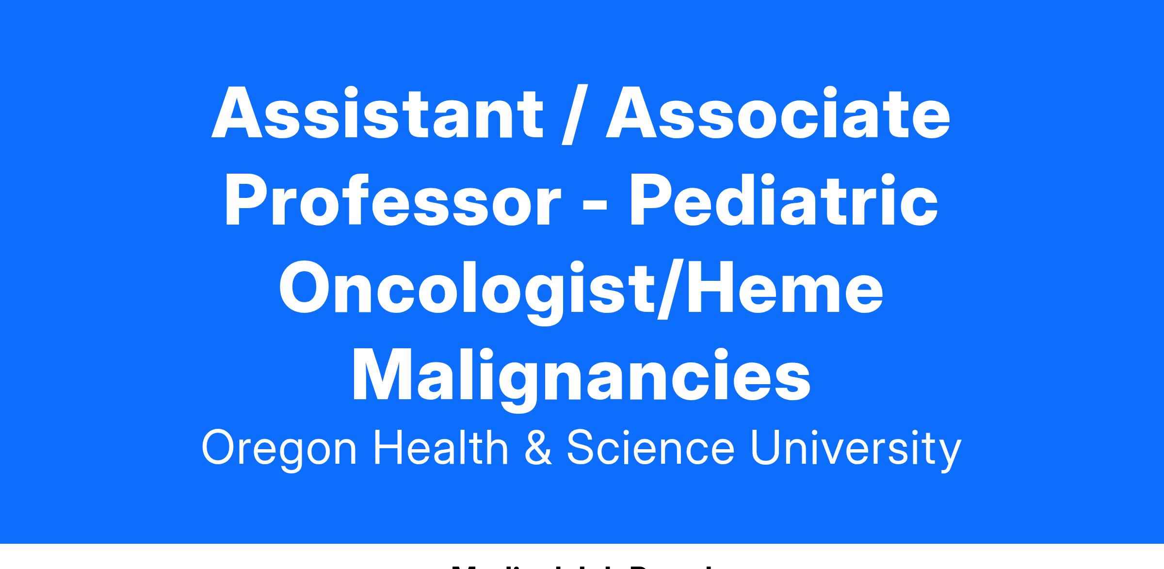 The Division of Pediatric Hematology-Oncology, within the Department of Pediatrics of Oregon Health & Science University (OHSU), is seeking an Assistant Professor or Associate Professor of Pediatrics specializing in the treatment of hematologic malignancies. The successful candidate will have a minimum of two years of post-fellowship experience in the care of complex hematologic malignancies; clinical experience in stem cell transplant and cellular therapy as well is strongly preferred. The position will assume clinical care of children, adolescent and young adults with hematologic malignancies and administrative/leadership responsibilities as assigned by the Division Head; participate in fellow training and student/resident educational programs of the Department; serve on committees and councils of OHSU; participate in outreach and public service programs and professional societies with the knowledge and consent of the Chair; conduct collaborative clinical, translational, and/or health systems research at OHSU, and fund these efforts as necessary through grants and contracts.
