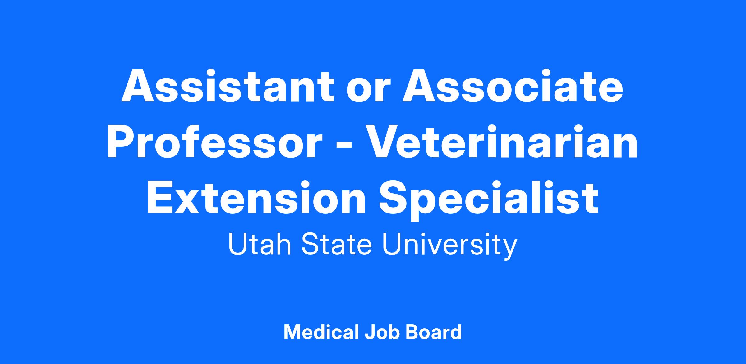The Department of Veterinary Clinical and Life Sciences (VCLS) in the College of Veterinary Medicine (CVM) at Utah State University (USU) is seeking a dynamic and dedicated Veterinary Extension Specialist for a tenure-track position as an assistant or associate professor based on qualifications/experience. This position is integral to our mission of enhancing the quality of life for animals, humans, and the environment. The successful candidate will have a major focus on extension services (75%), combined with teaching responsibilities in public health and epidemiology (20%), and a minor service component (5%). This is a tenure-track position with a fiscal-year (FY), 12-month appointment, with an anticipated start date of January 1, 2025. Review of applications will begin October 1, 2024, and continue until the position has been filled.