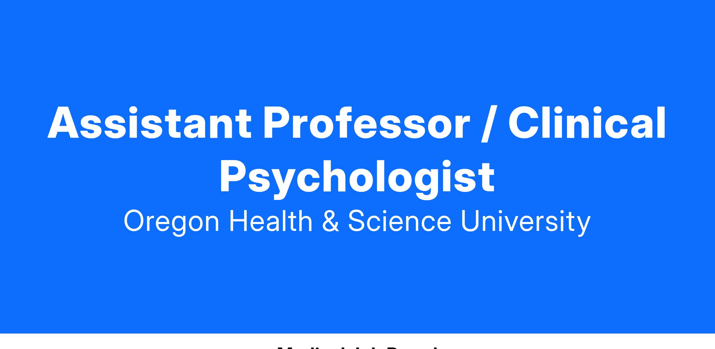 This position is under the supervision of the Chief of Pediatric Psychology, IDD. Provide primarily treatment/intervention services for children and their families served by Doernbecher Children’s Hospital Sleep Medicine Clinic; Provide instruction to predoctoral psychology interns who are participating in an American Psychological Association accredited internship program; Conduct and/or participate in clinical research that supports the mission of the Division of Pediatric Psychology, the mission of the IDD, and/or the mission of the Department of Pediatrics; and Provide consultation to the community, patients of Doernbecher Children’s Hospital, and to hospital staff of Doernbecher Children’s Hospital.