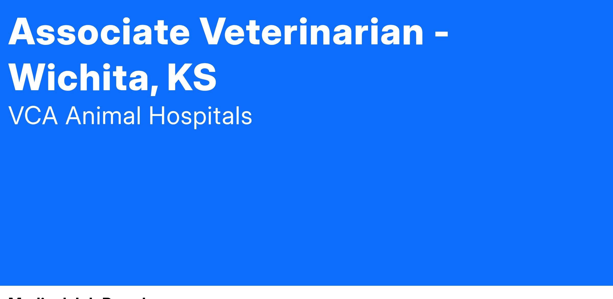VCA Andover Animal Hospital, located in Wichita, KS, is looking for an Associate Veterinarian who enjoys practicing advanced medicine with a cohesive, tenured team.