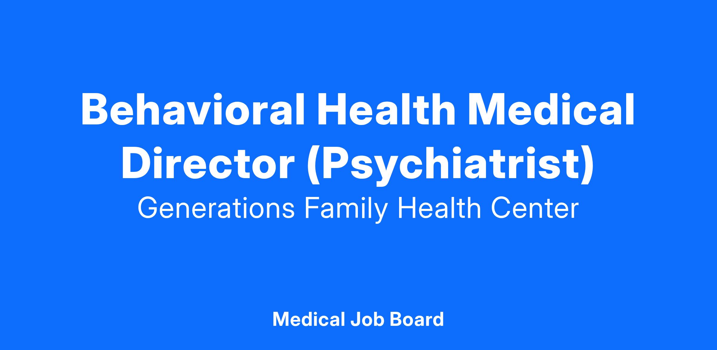 Behavioral Health Medical Director / Psychiatrist Role: