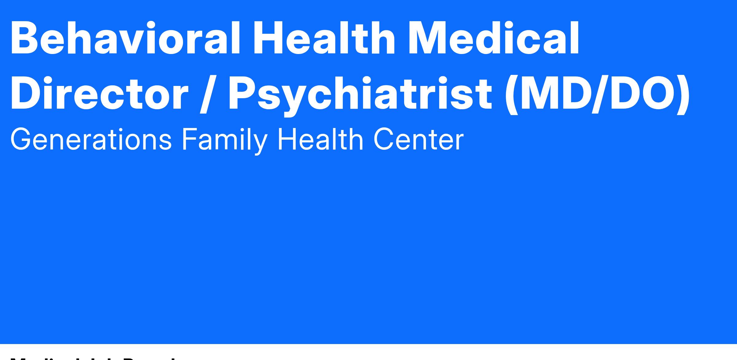 Behavioral Health Medical Director / Psychiatrist Role: