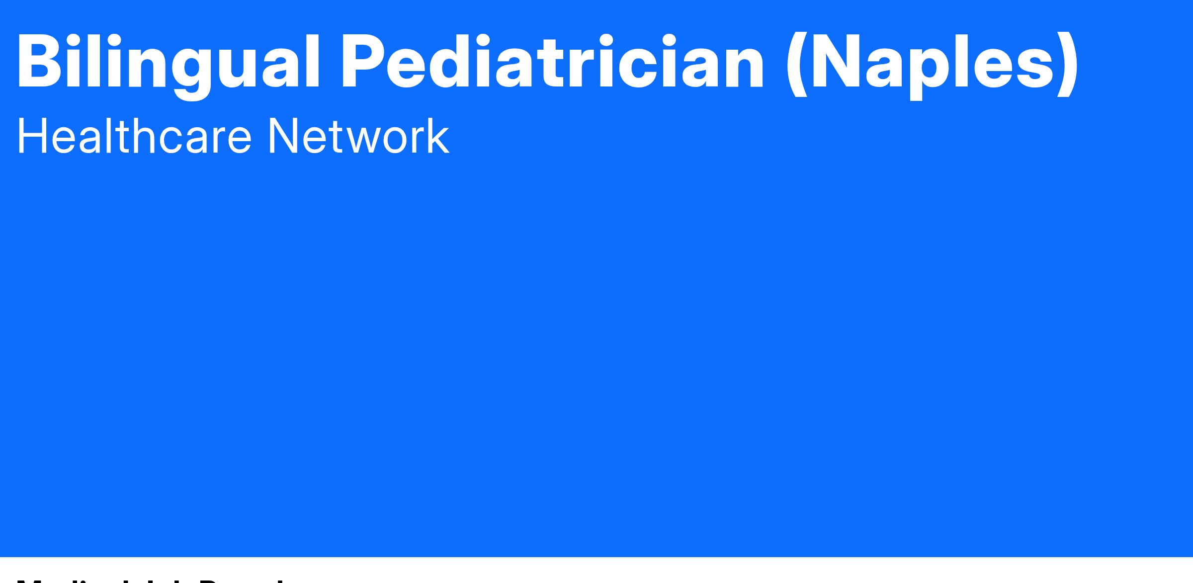 We are currently hiring for a Pediatrician for our Naples Pediatric office, located in Immokalee and Naples, FL.