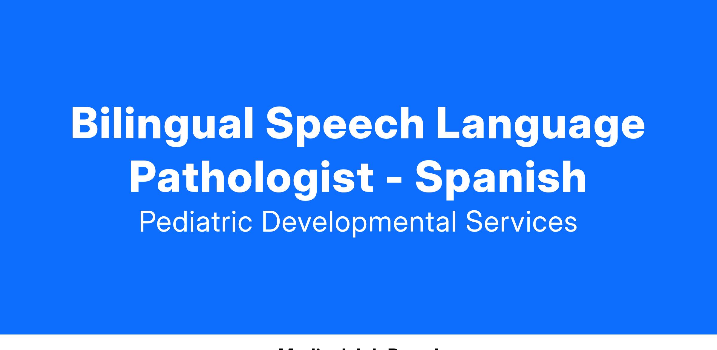 Pediatric Developmental Services (PDS) is seeking to hire a full-time Bilingual Speech Language Pathologist to service local K-12 students in Spanish. Do you enjoy working with children? Would you like to improve the lives of students through exceptional speech therapy? If so, this may be the position for you!
