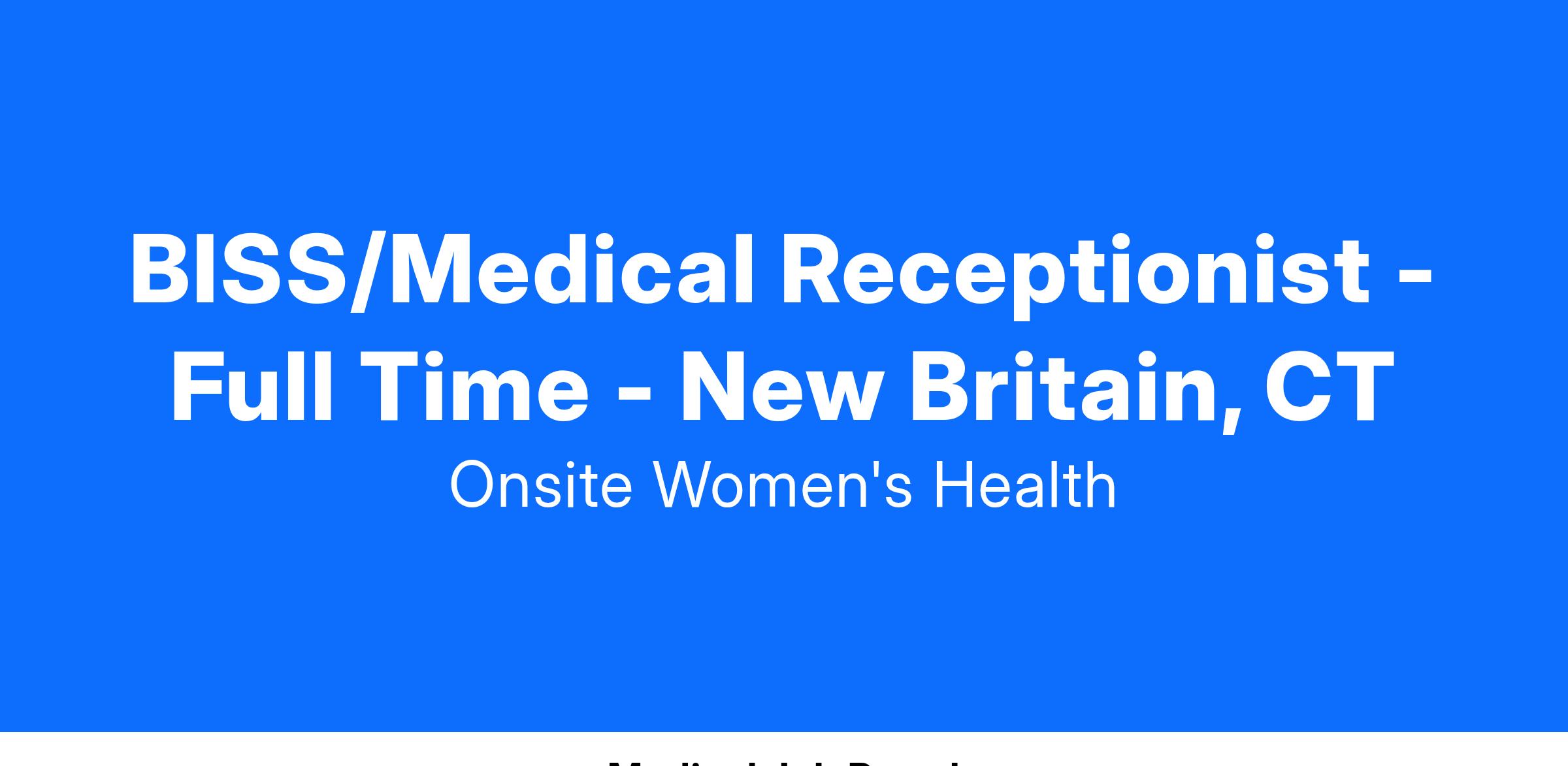 BISS/Medical Receptionist - Full Time - New Britain, CT
