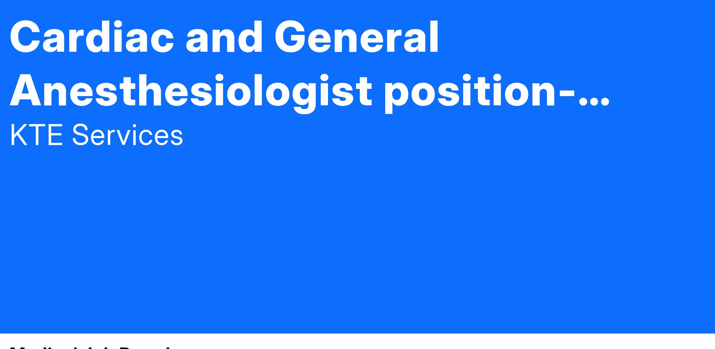 Job Title: Cardiac Anesthesiologist