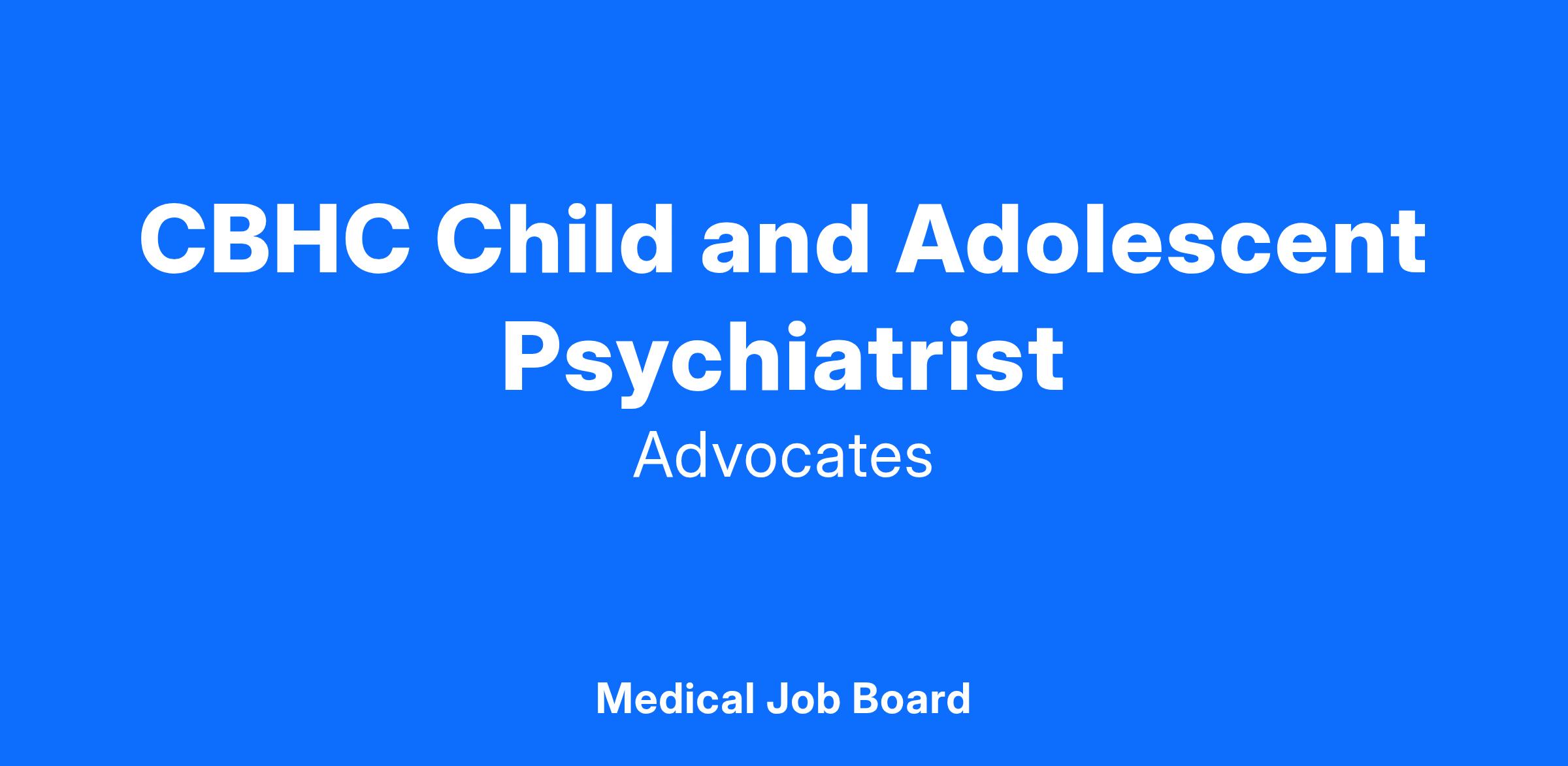 The CBHC Child and Adolescent Psychiatrist provides team-based, direct clinical services to children and adolescents and their families served by Advocates’ CBHC, including evaluating medical and psychosocial conditions, collaboratively developing and implementing treatment plans, prescribing medication as appropriate, and monitoring and evaluating treatment progress.