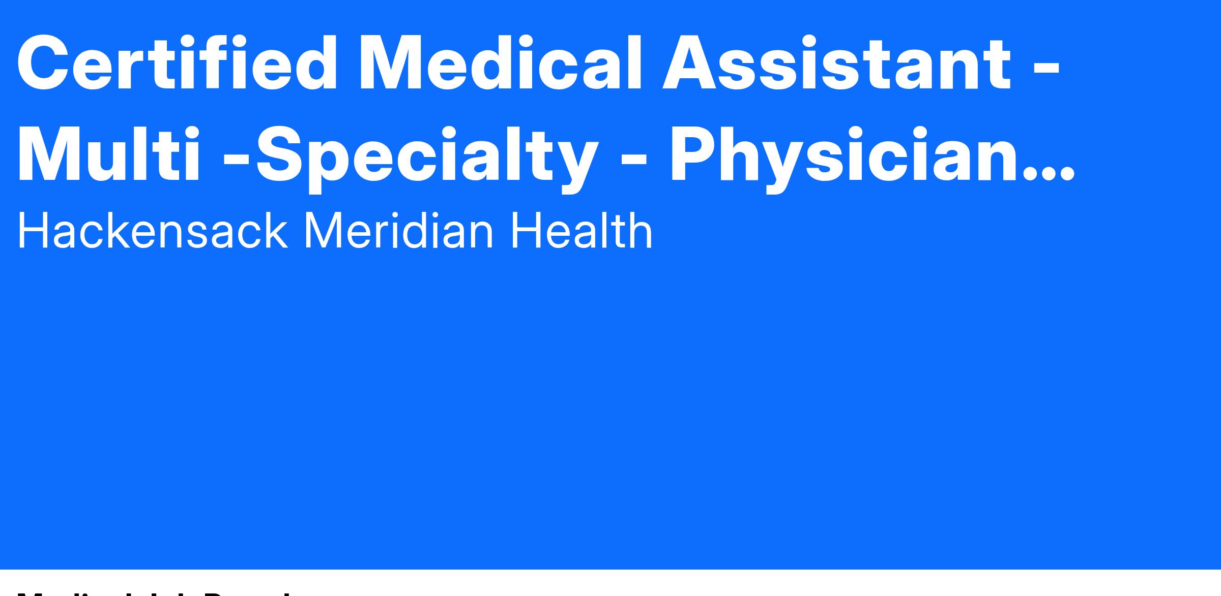 A day in the life of a Certified Medical Assistant - Primary Care at Hackensack Meridian Health includes: