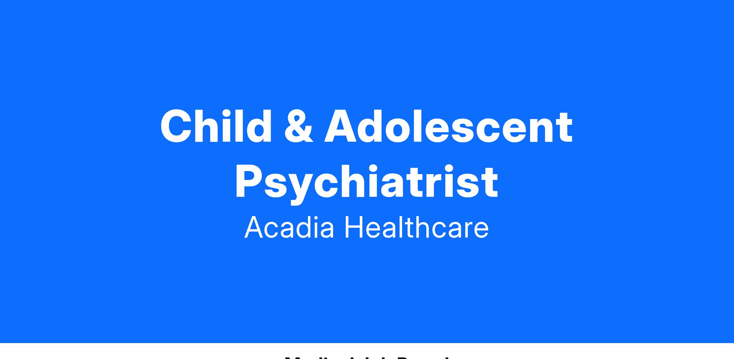 We are seeking a Full Time Child and Adolescent Psychiatrist to join our team.