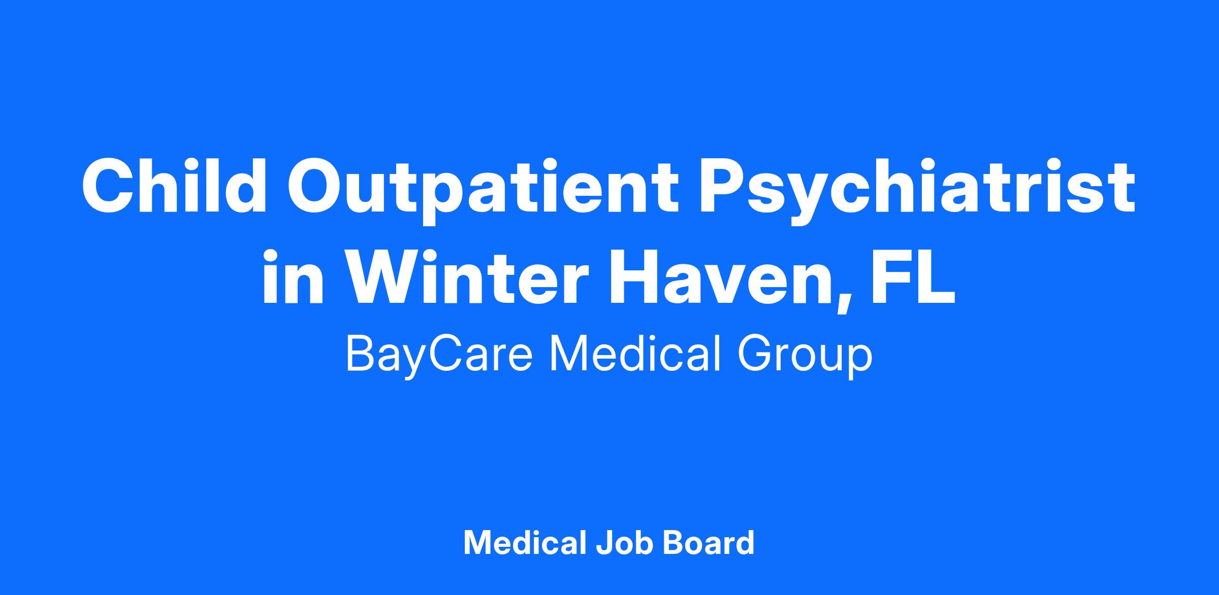 BayCare Medical Group is seeking a skilled and passionate Child Outpatient Psychiatrist to join our BayCare Behavioral Health team in Winter Haven, Florida. Become part of a reputable and long-standing medical practice that has built a strong foundation in the community, attracting a wide network of referring physicians and satisfied patients.