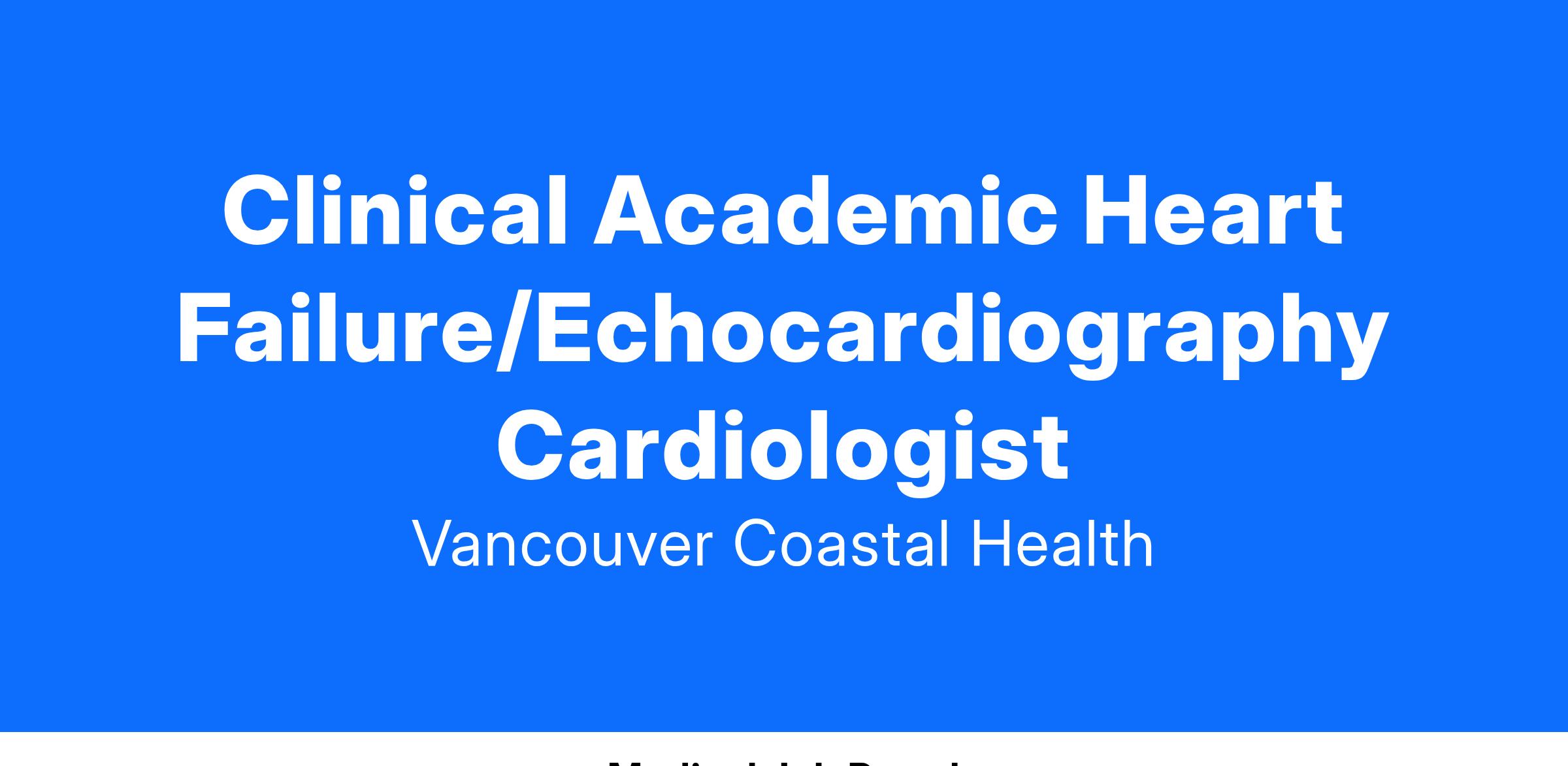Come work as Clinical Academic Heart Failure/Echocardiography Cardiologist with Vancouver Coastal Health (VCH)!