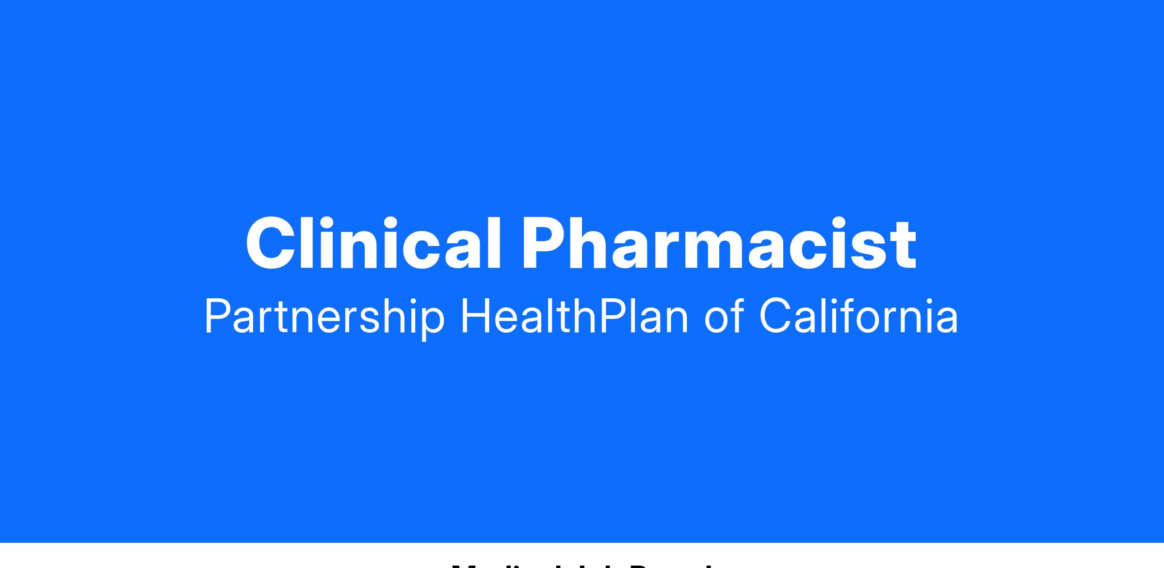 Special Skills, Licenses and Certifications | Valid CA Pharmacist License required. Knowledge of Medi-Cal program as it relates to pharmacy services. Familiarity with local medical and pharmacy communities preferred. Knowledge of current treatment guidelines and familiarity with online medical and pharmacy information resources. Valid California driver’s license and proof of current automobile insurance compliant with PHC policy are required to operate a vehicle and travel for company business.