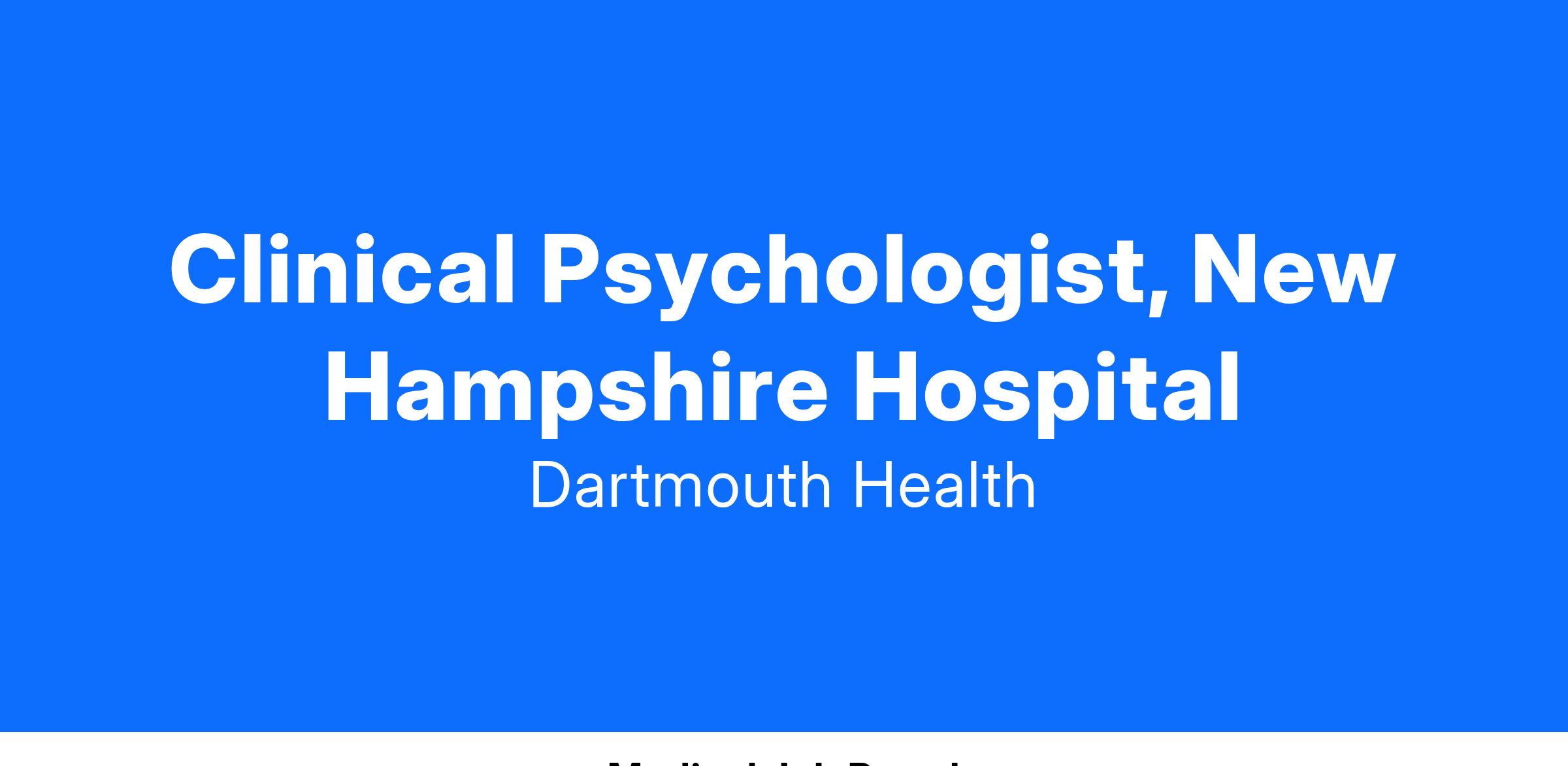 The Department of Psychiatry at Dartmouth Health and the Geisel School of Medicine at Dartmouth is seeking a licensed, doctoral level Psychologist with strong clinical, and teaching interests to join our faculty and serve patients at New Hampshire Hospital, our affiliated state psychiatric facility located in Concord, New Hampshire.