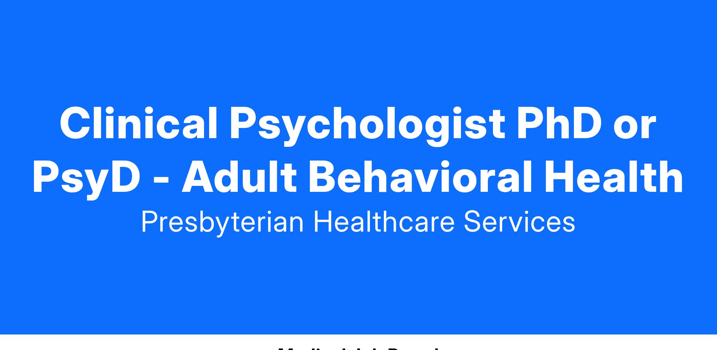 Presbyterian Medical Group seeks a licensed Clinical Psychologist to join our established practice in Albuquerque, New Mexico. We're all about well-being, starting with yours. We offer a nationally competitive salary with relocation allowance available, CME allowance and fully paid malpractice insurance.