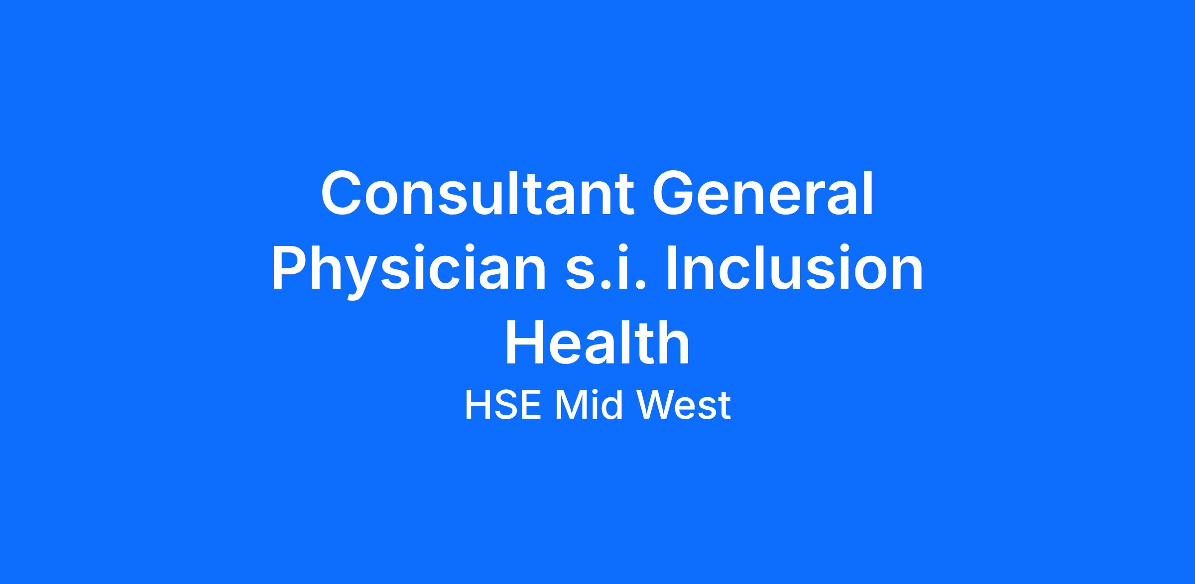 HSE Mid West are currently recruiting for a temporary Consultant General Physician s.i. Inclusion Health.
