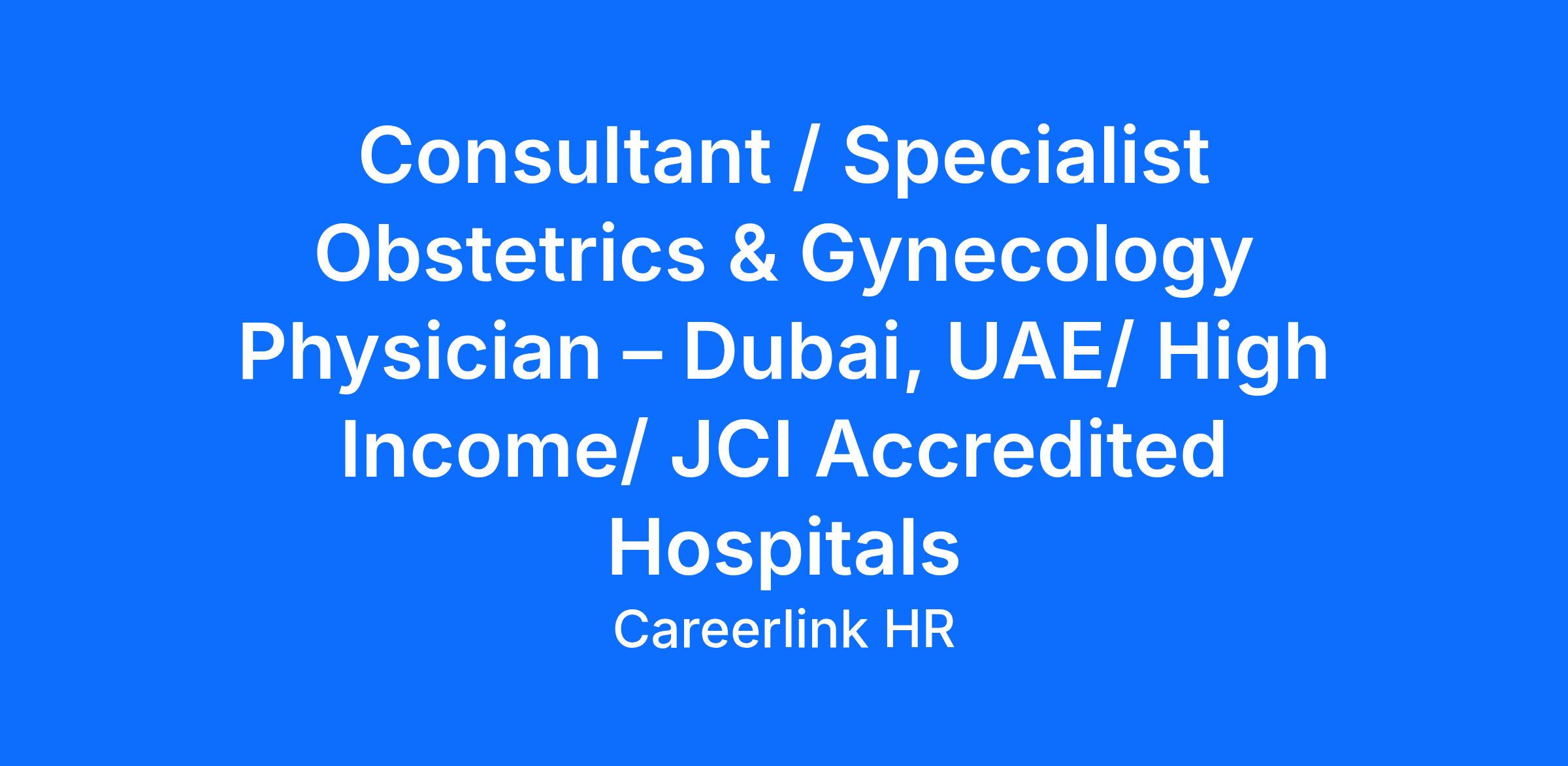 A well-established multispecialty hospital in Dubai, United Arab Emirates is seeking a qualified Consultant / Specialist Obstetrics & Gynecology Physician to join its multidisciplinary clinical team. The role focuses on providing comprehensive care in women’s reproductive health, pregnancy management, and gynecological conditions within a modern healthcare environment supported by advanced diagnostic facilities and maternity care services.