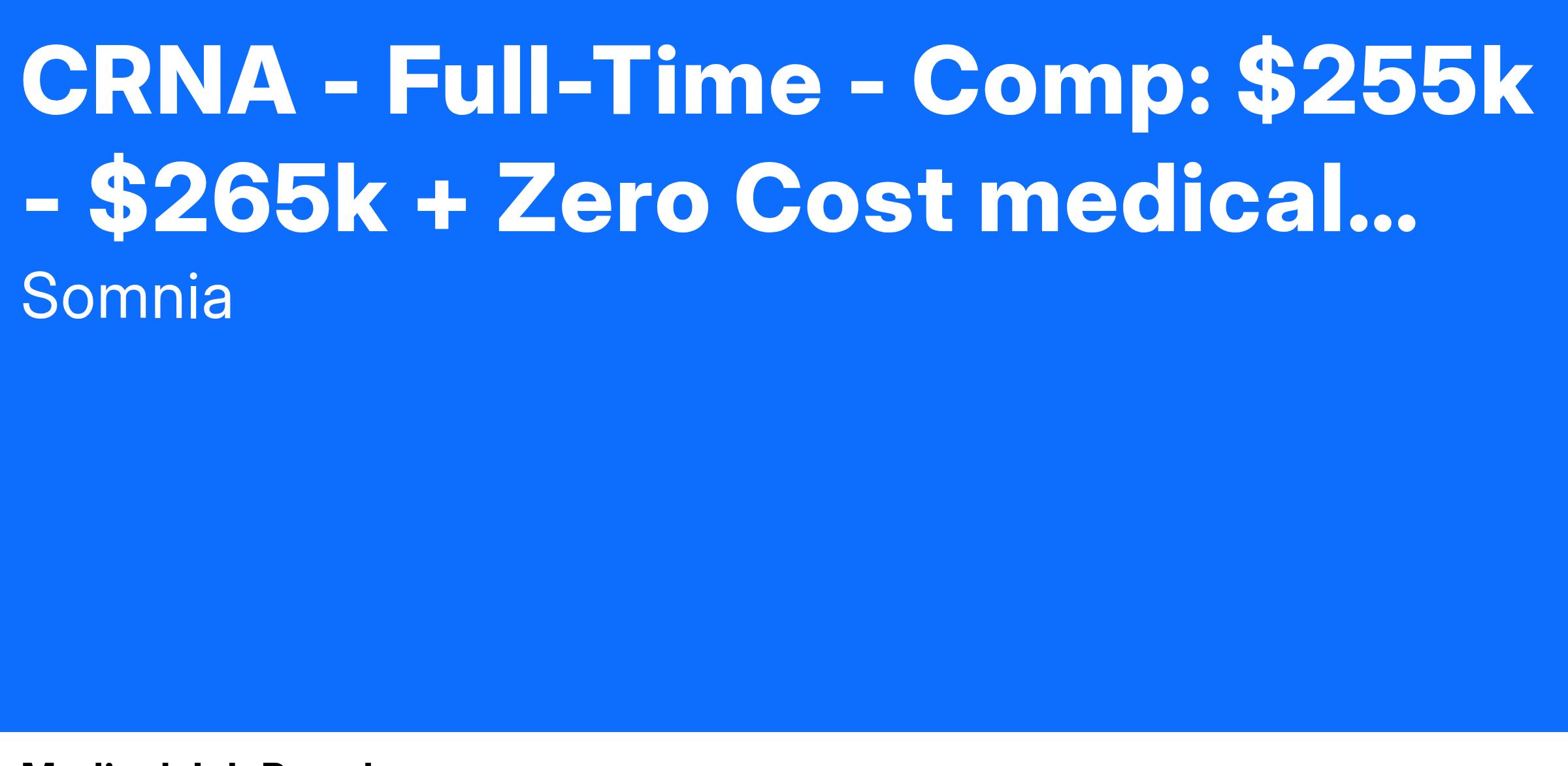 - Collaborative Supervision Model – CRNA & physician-only practice with a strong culture of mutual respect