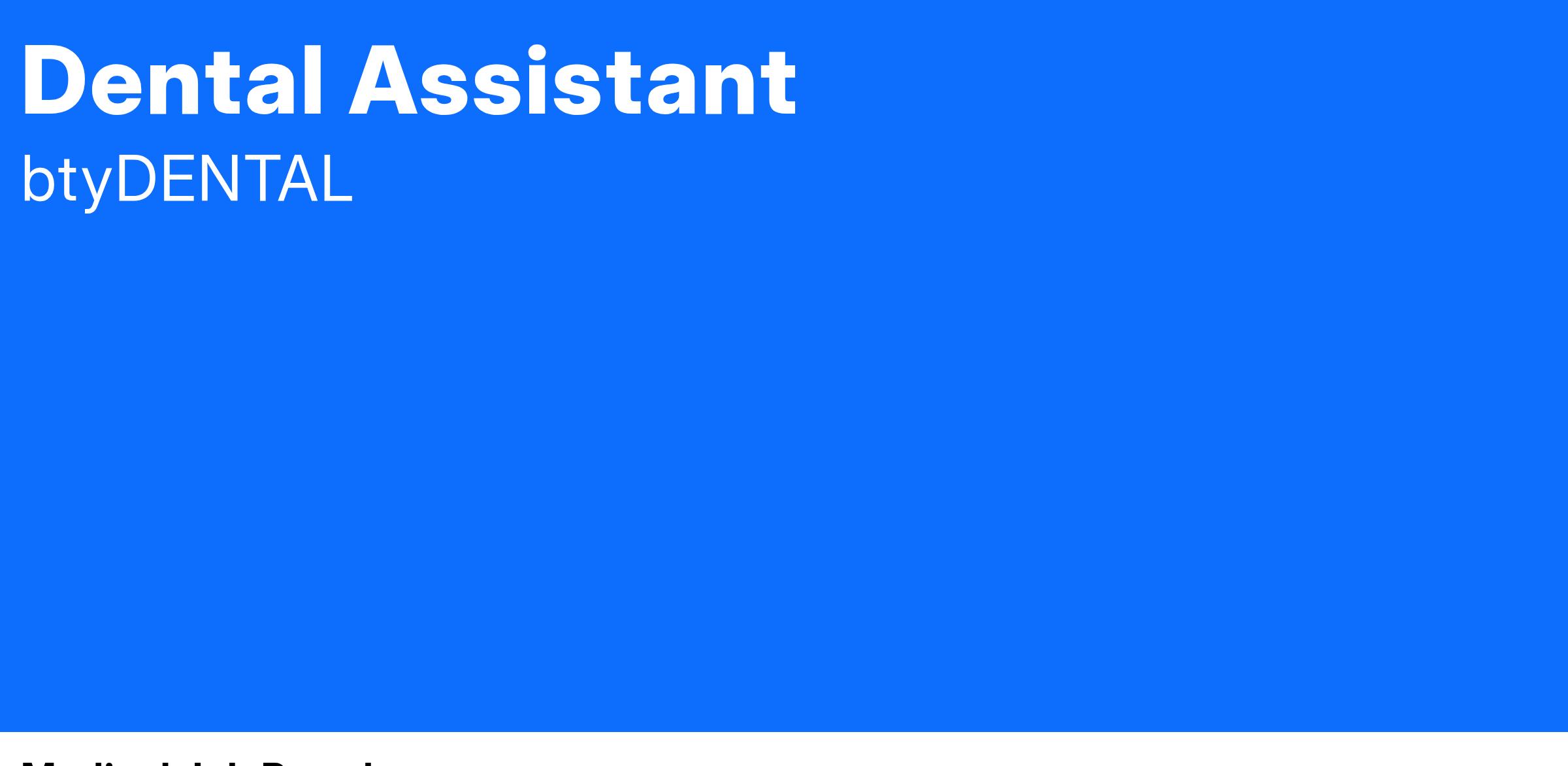 Are you passionate about dental care and helping patients maintain their oral health? btyDENTAL Group is looking for a dedicated and hardworking Dental Assistant to join our growing team!