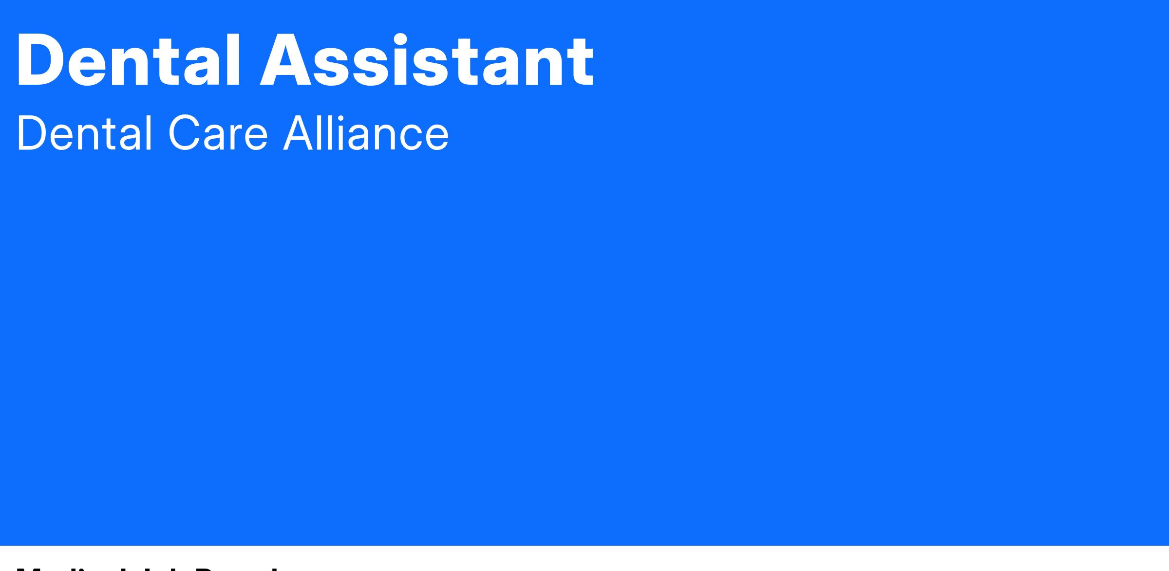 Imagix Dental is looking for a full-time traveling dental assistant to support our offices located in Kennesaw and Woodstock, GA. The Dental Assistant we hire is required to have at least 1 year of Dental Assisting experience and must be x-ray certified in the state of Georgia. Must be a team player with a compassionate and professional demeanor; self-motivated and have the ability to thrive in a fast paced environment. We offer a competitive salary, plus benefits!