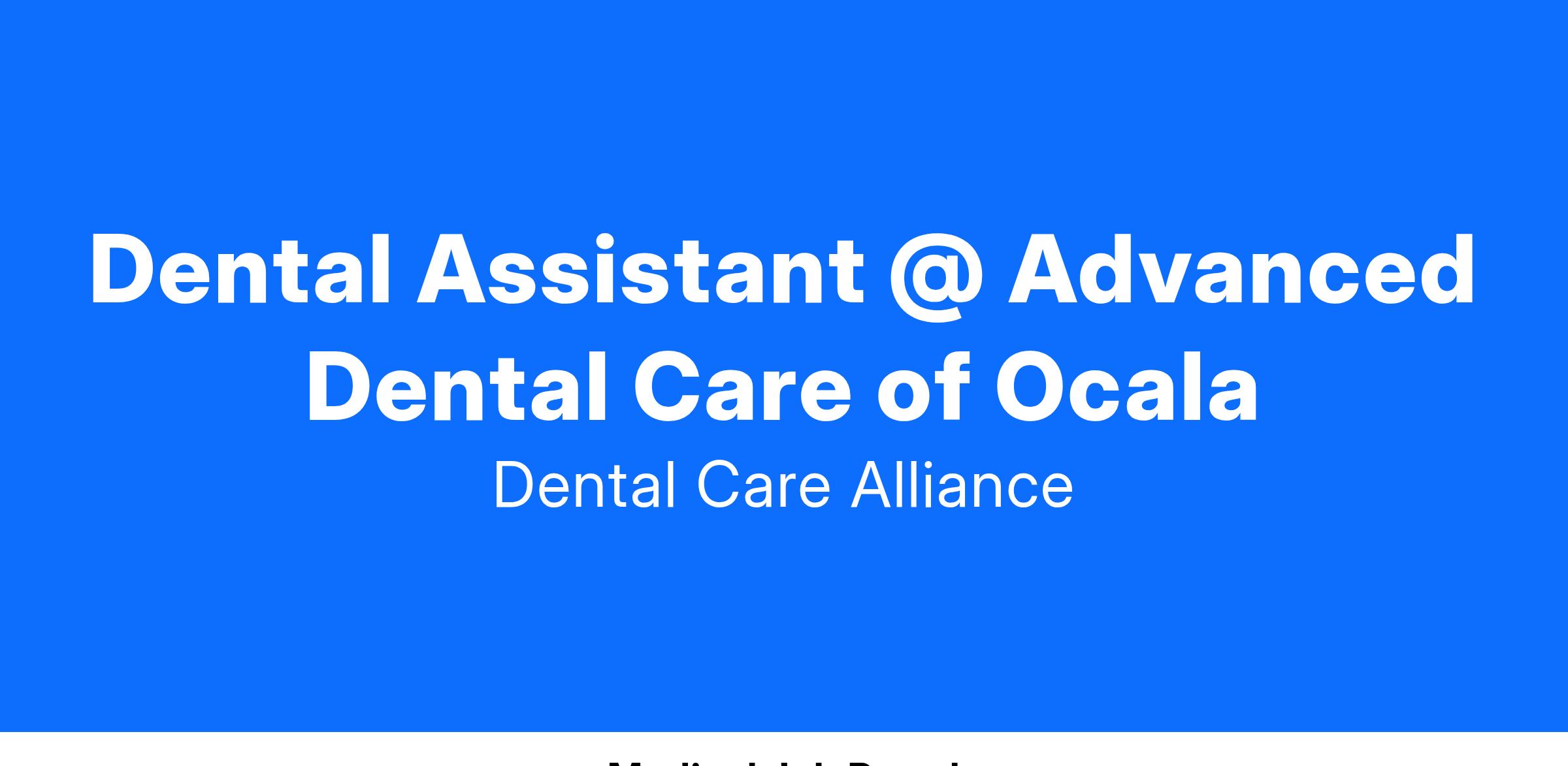 Advanced Dental Care is looking for a full time Dental Assistant to join our practice located in Ocala, FL. Candidates must have prior hands on dental assisting experience to be considered (prefer minimum 4 years) Candidates are required to have their EFDA & X-ray certificate for the state of FL.