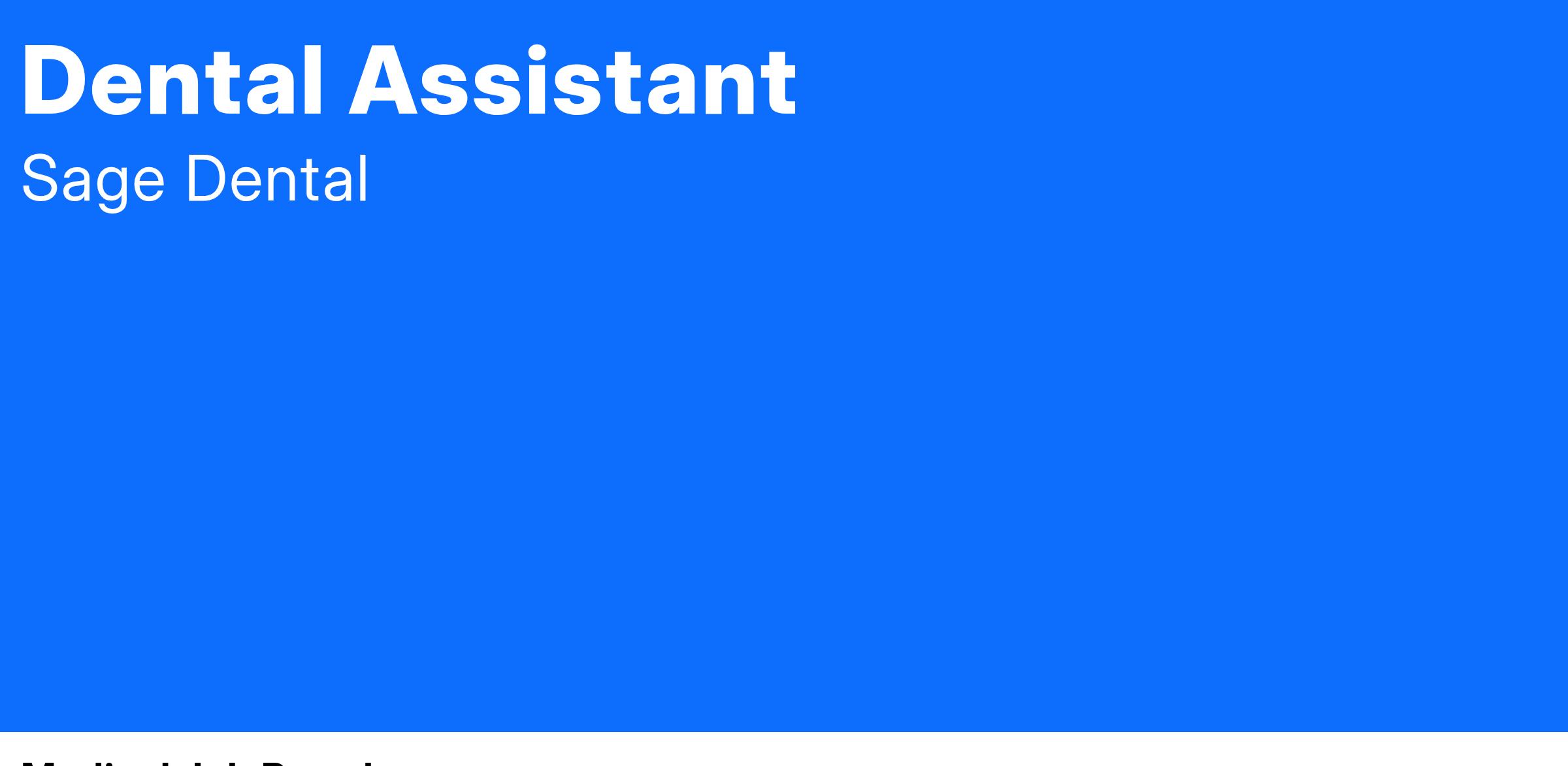 Sage Dental is seeking a Temporary Dental Assistant to join our team in Davie!