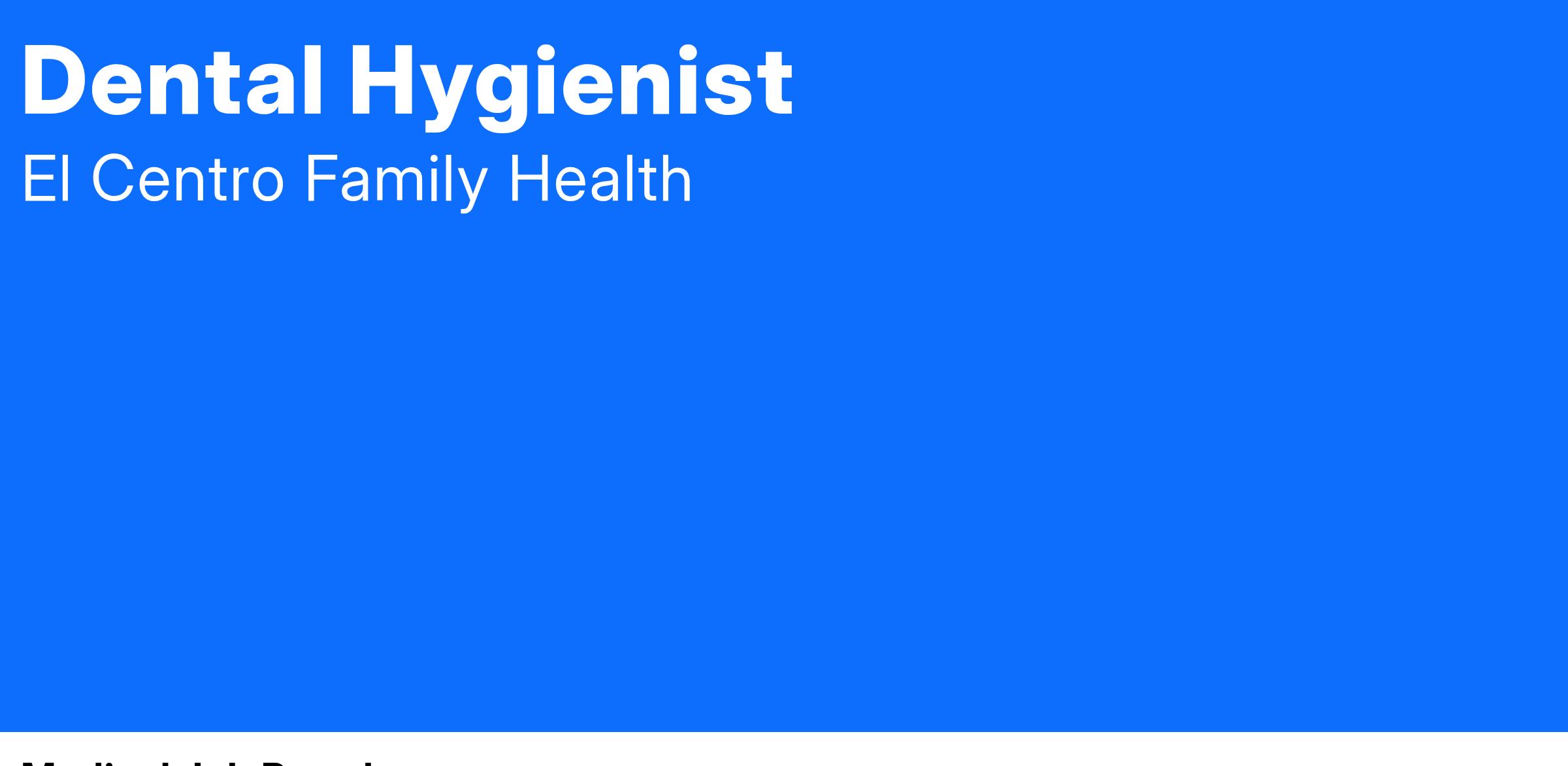 El Centro Family Health is seeking a full-time Dental Hygienist, dedicated to serving the needs of our community.