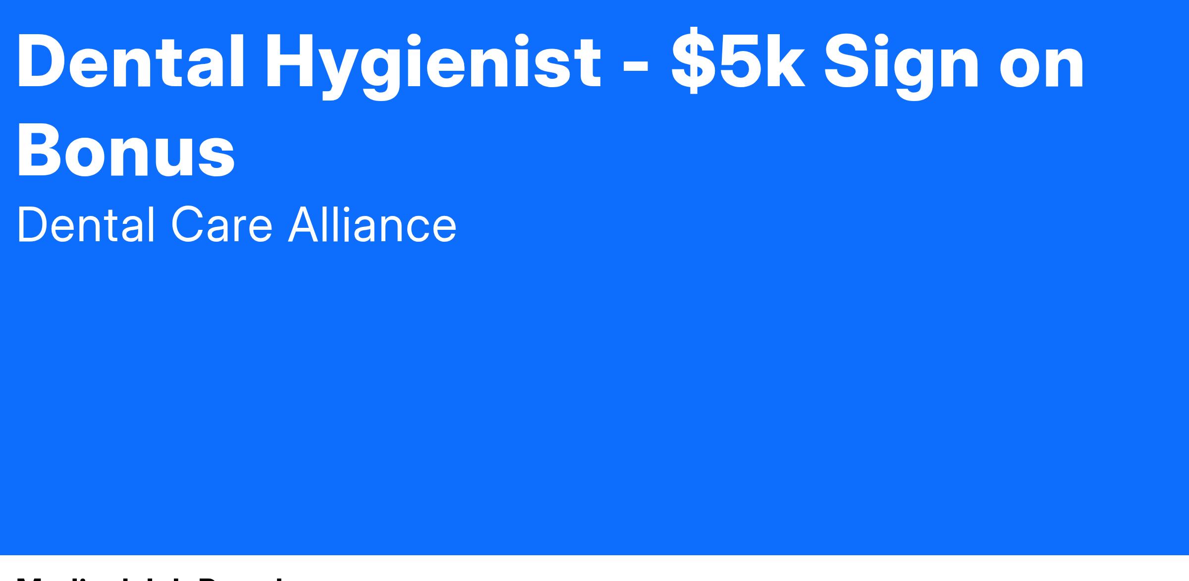 Our patients deserve the best—and that starts with you. We're looking for an exceptional hygienist to help us deliver outstanding care. As a thank-you for your commitment, we're offering a generous bonus to the team member who commits to partnering and growing with us. Join us and feel truly valued—because great care begins with great people.