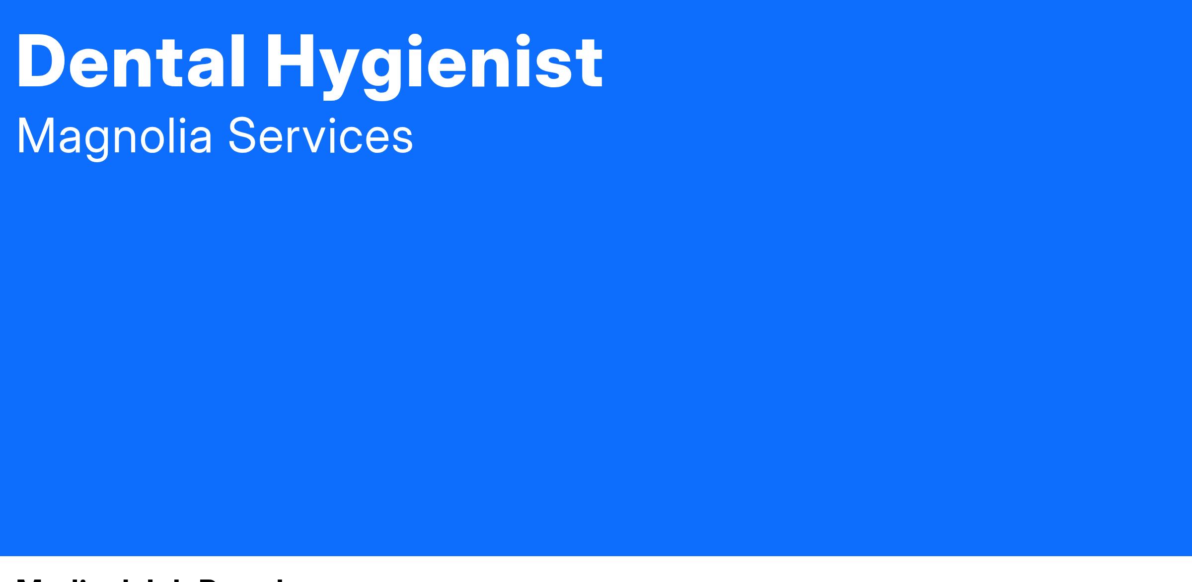Magnolia Dental is seeking an enthusiastic and detail-oriented Dental Hygienist to join our dynamic team. The ideal candidate will be passionate about patient education, preventative care, and building long-lasting relationships with patients.