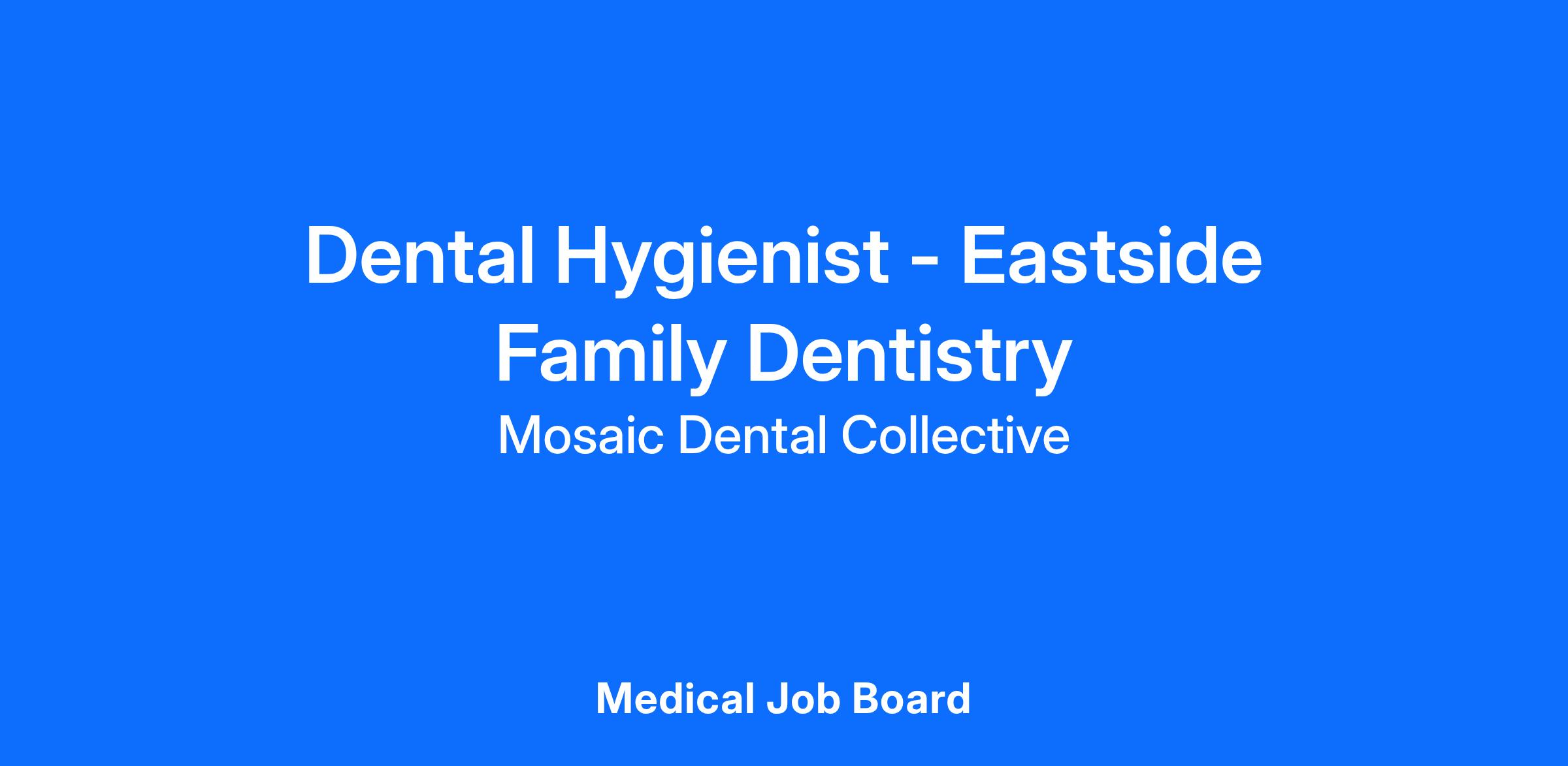 Eastside Family Dentistry, and Dr. Alexandra Cristescu partner of Mosaic Dental Collective, is looking for a warm, detail-oriented, and patient-centered Registered Dental Hygienist (RDH) to join the team in Issaquah, WA. This role is perfect for someone who loves building patient relationships, enjoys providing top-tier preventative care, and wants to be part of a fun, supportive environment.