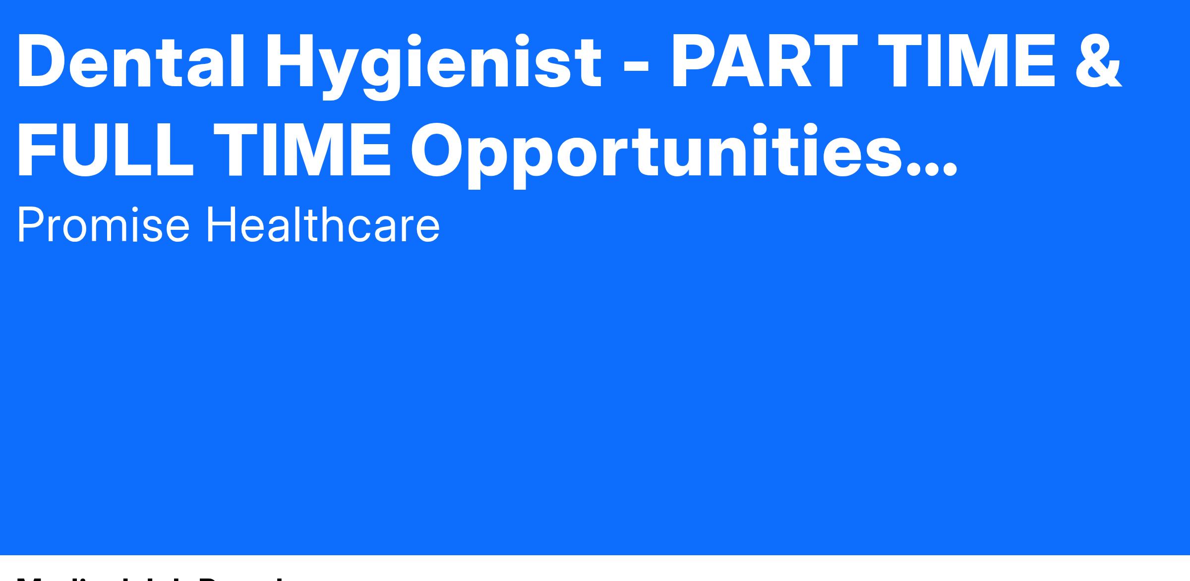 Be a part of a team that values excellence, equity, and community. If you're ready to lead with passion and precision, apply now to become our Dental Hygienist and help us make a lasting impact on the future of healthcare.