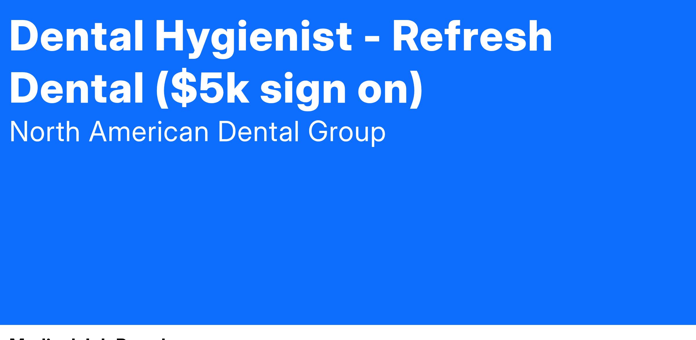 We are looking for a licensed, patient-focused hygienist, with a like-minded career vision, to provide best-in-class patient care.