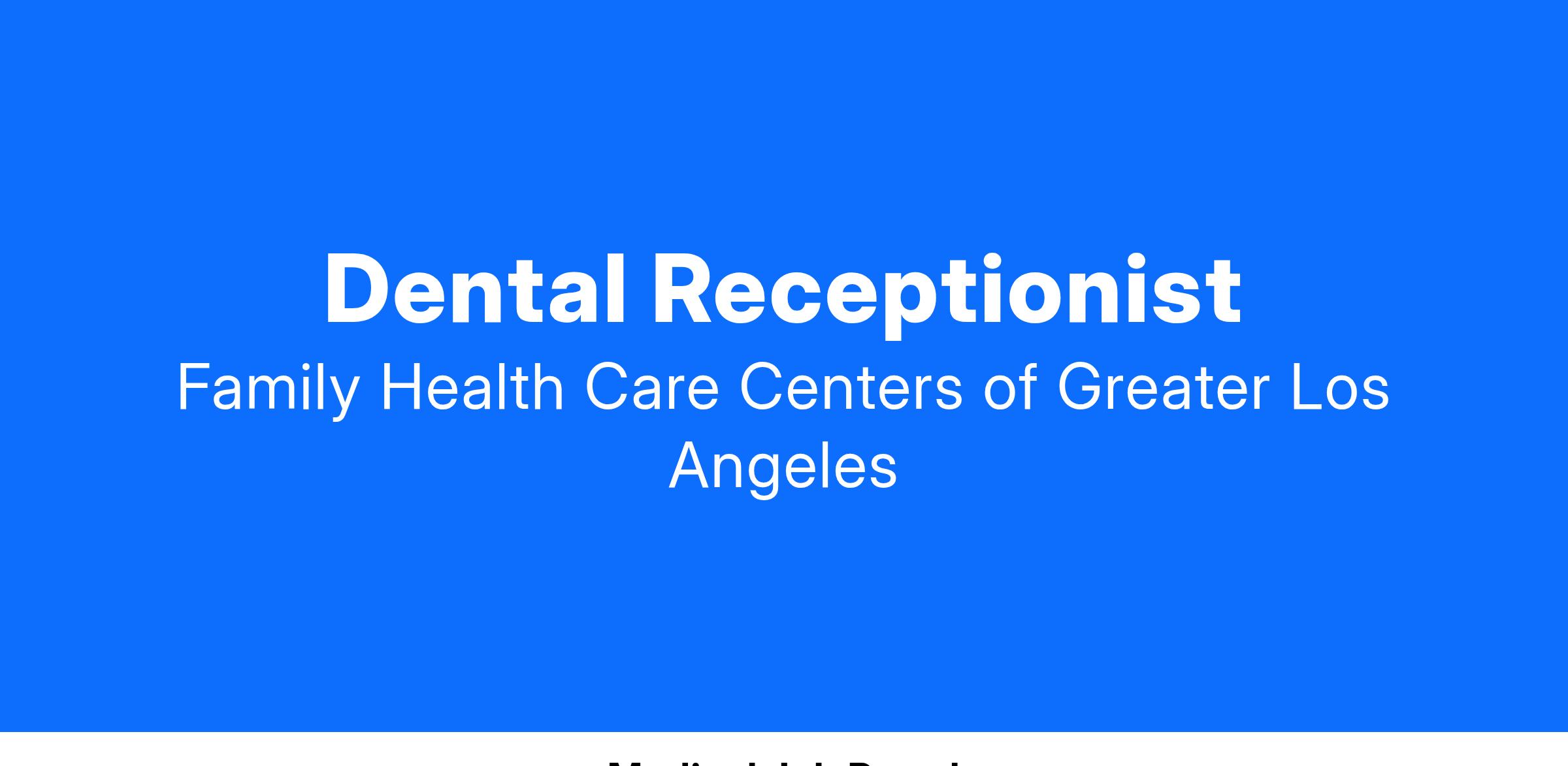 JOB TITLE: Dental Receptionist