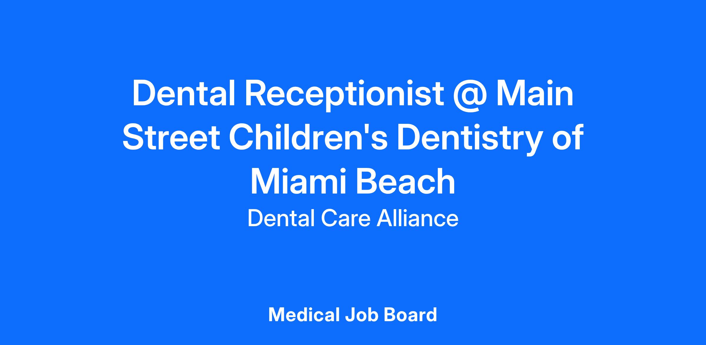Main Street Children's Dentistry of Miami Beach is looking for a Dental Receptionist to join our clinical team by providing a high level of patient care and satisfaction while operating team-based environment. We take pride in providing comprehensive, personalized care in warm and welcoming environment, prioritizing patient comfort and advanced treatments for optimal oral health.