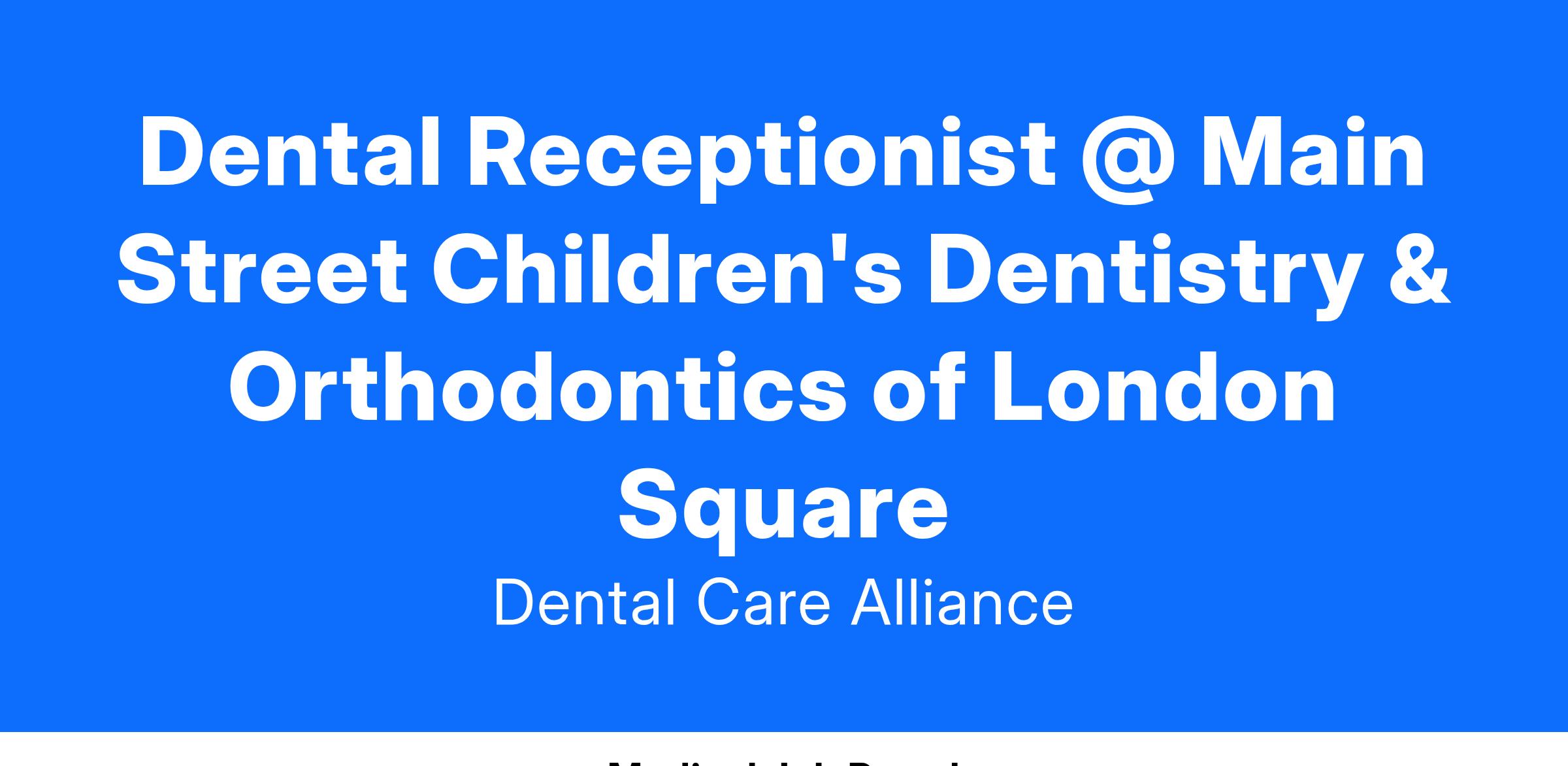 Main Street Children's Dentistry & Orthodontics has an immediate opening for a full-time bilingual (English & Spanish) Dental Receptionist for our office located in Miami, FL. The Dental Receptionist we hire must have prior dental office experience to be considered. We are looking for candidates that have experience with: answering phones, maintaining schedules, and managing patient files just to name a few! Must also have exceptional customer service skills; strong communication skills; and the abilities to multi-task, prioritize and follow up to ensure best practices.Β This position offers PTO and a full benefit package. The hours are Mon-Fri 8:00-5:00 & 3 Saturdays a month.
