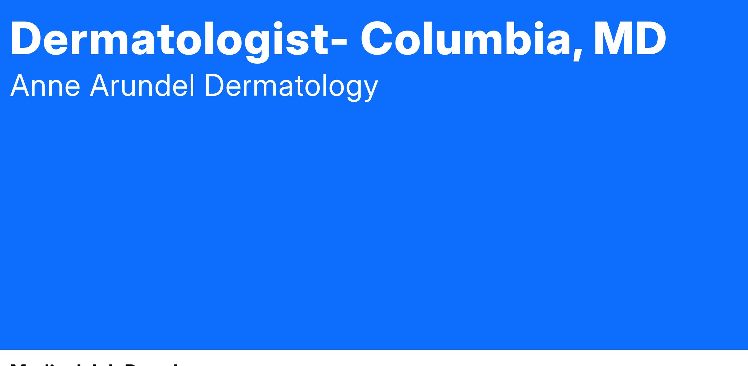 Anne Arundel Dermatology is a premier dermatology practice with locations in seven states. We have been serving patients for over 40+ years and are currently seeking a Board Certified Dermatologist to join our team in Columbia, MD.