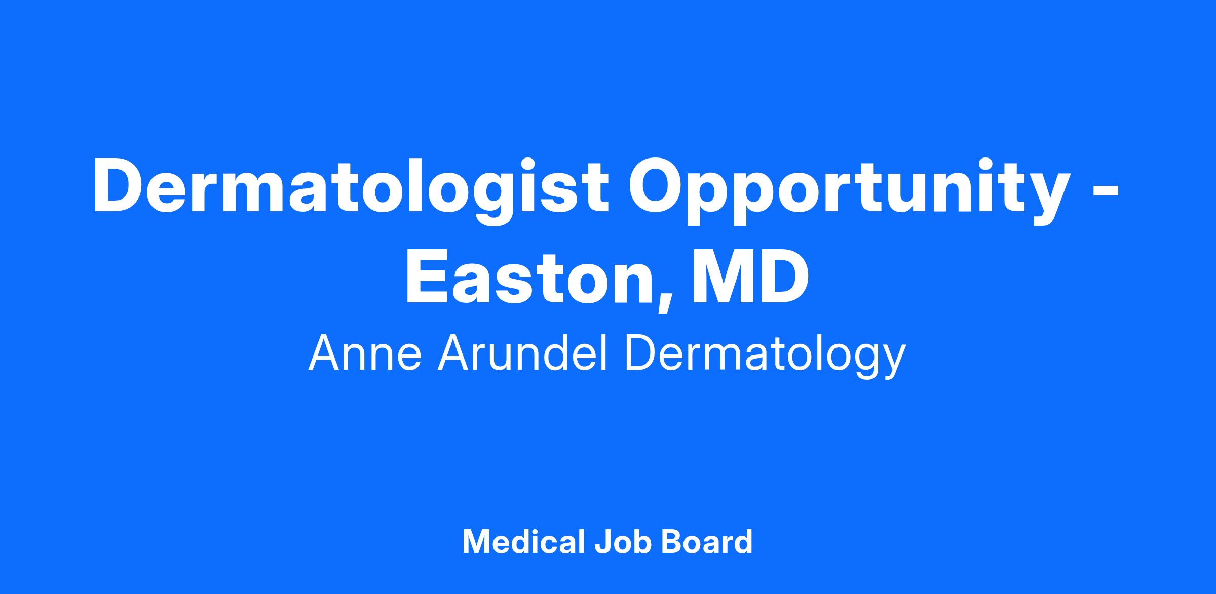 Anne Arundel Dermatology, P.A., is a large Dermatology group practice with a network in 7 states. We have been serving patients for over 50 years and are currently seeking a BC/BE Dermatologist to join our team in Easton, MD just minutes from the beautiful beaches on the Eastern Shore of Maryland, and within driving distance to Baltimore, Washington, DC & Annapolis, MD.