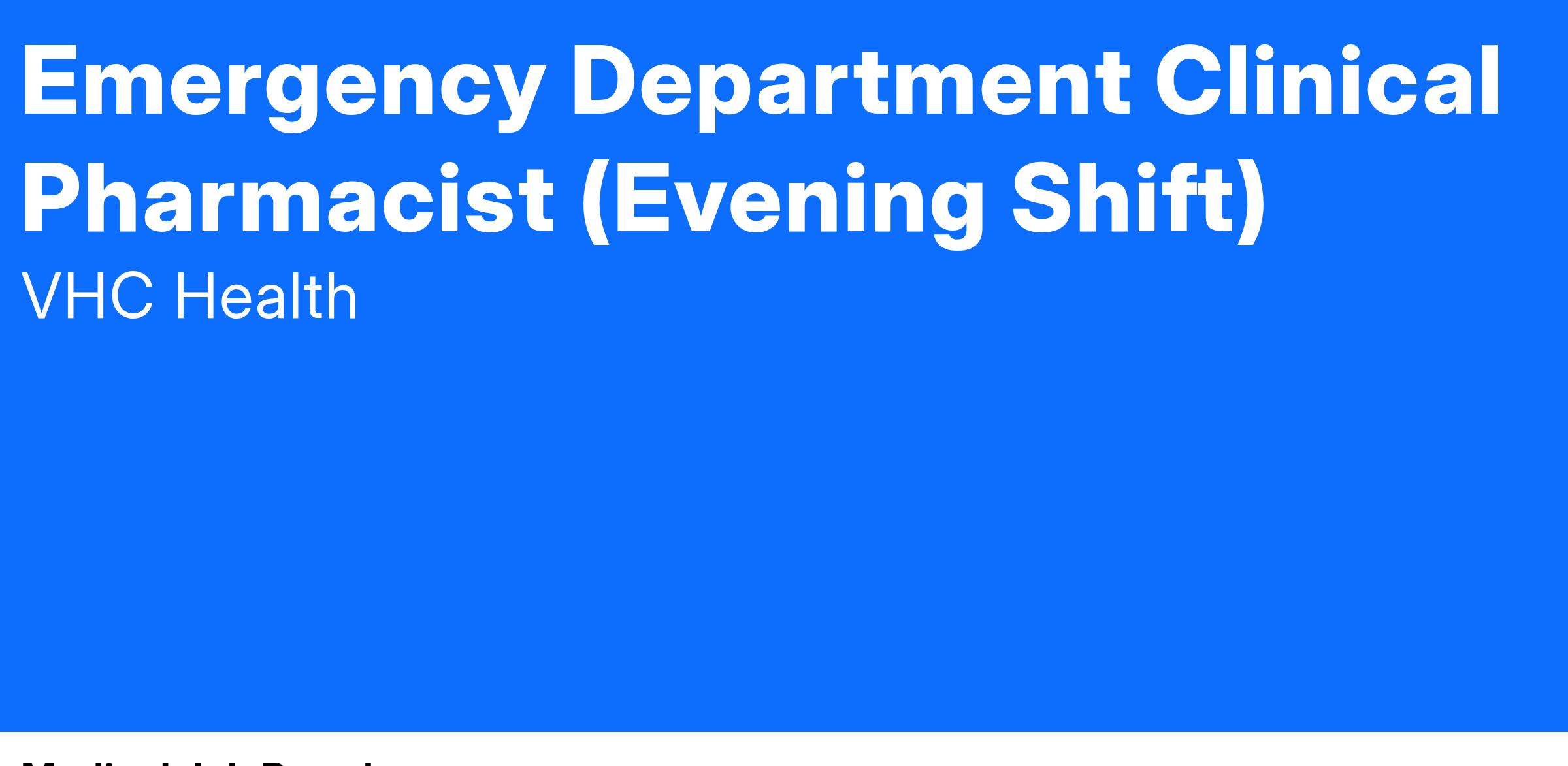 The Emergency Department Clinical Pharmacist position will be staffed within the Emergency and Trauma Departments as an integral member of the Emergency Medicine and Trauma Care teams. The clinical pharmacist is responsible for performing fundamental clinical pharmacy duties to facilitate safe, effective, and evidence-based use of medications in the neonate, pediatric, and adult patient populations. Key areas of clinical practice will include trauma response and emergency medicine management for these patient populations. Duties include assisting with appropriate selection, dosing, administering, and dispensing of medication orders, providing support for medical emergencies (Code Blue, Code Stroke, Code STEMI, Code Sepsis, traumas, conscious sedation, and rapid sequence intubations). The clinical pharmacist will contribute to the education of emergency medicine staff, as well as precepting pharmacy students and residents. The yearly performance evaluation will be based on measurable outcomes related to quality initiatives, cost containment, safety, and optimization.