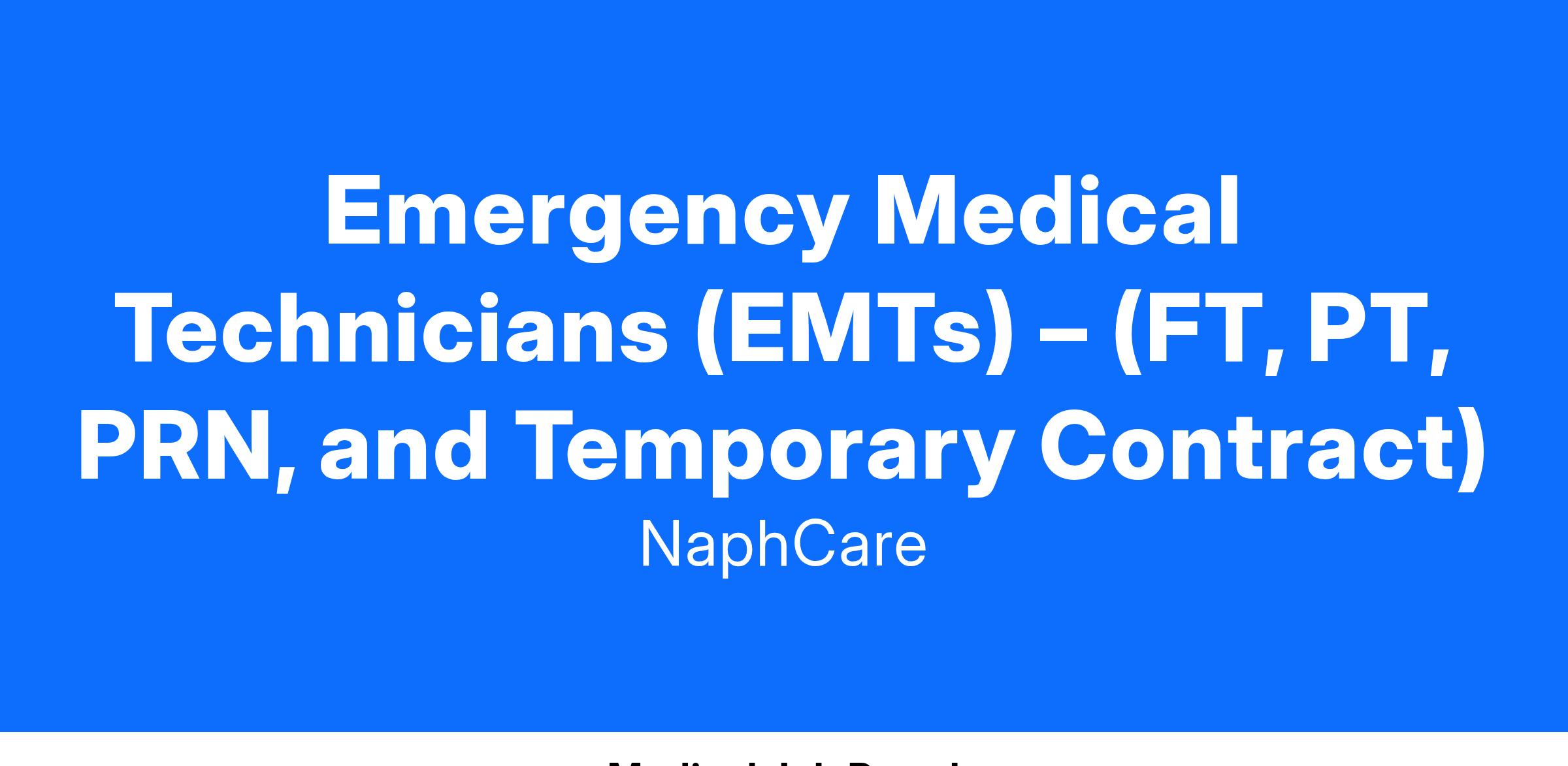 NaphCare is hiring Emergency Medical Technicians (EMTs) just like you to join our team at the Arizona Department of Corrections - Phoenix Facility located in Phoenix, AZ. Full Time, Part Time, PRN shifts, and 8-13 week temporary contracts are available! Pay rates range from $20.00 - $28.00 per hour based on employment status, shift, specific facility, site needs, licensure, and experience. Rates differ for Basic EMT versus Advanced EMT or Paramedics.